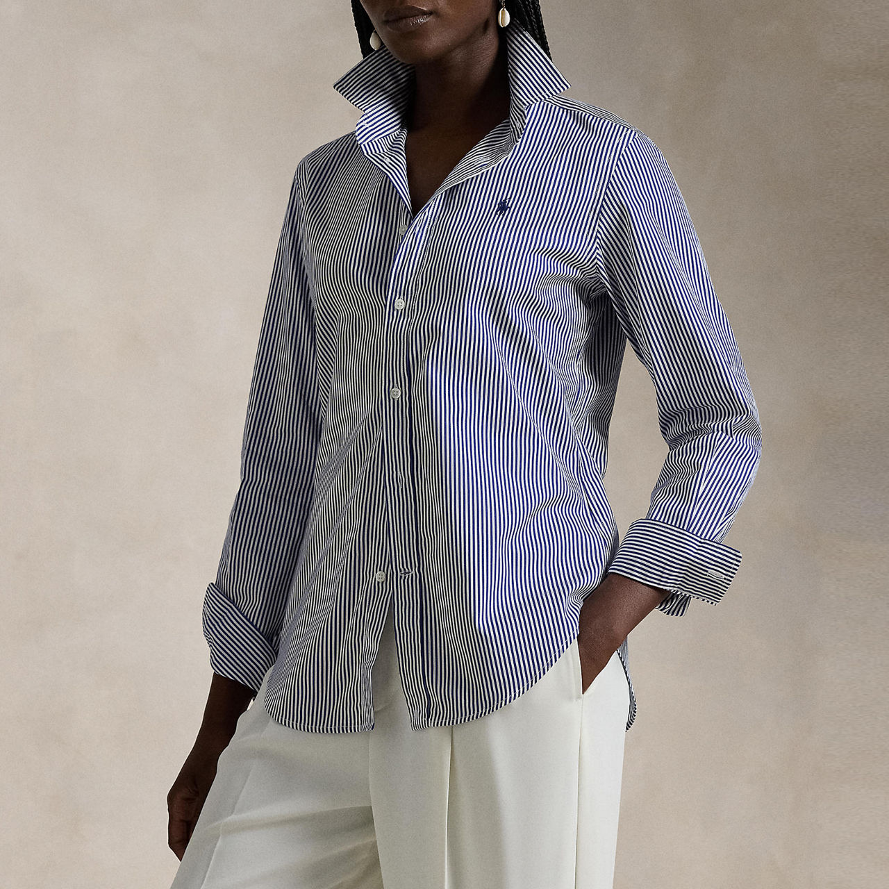 - Striped, long sleeves, classic collar, button fastenings