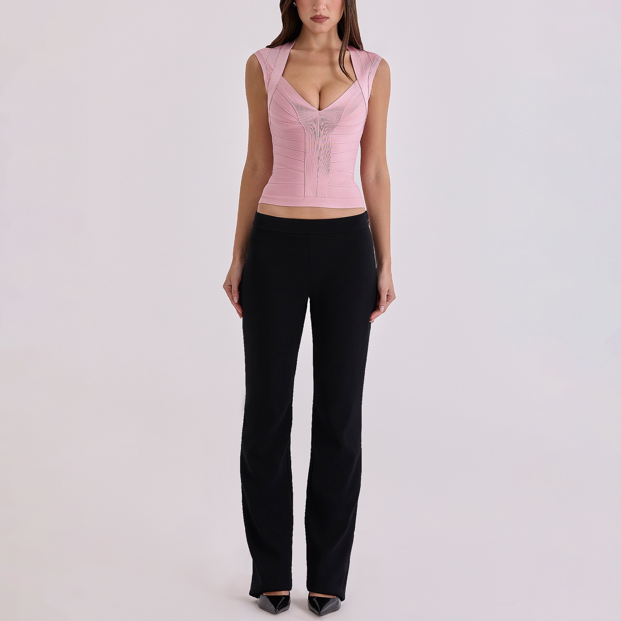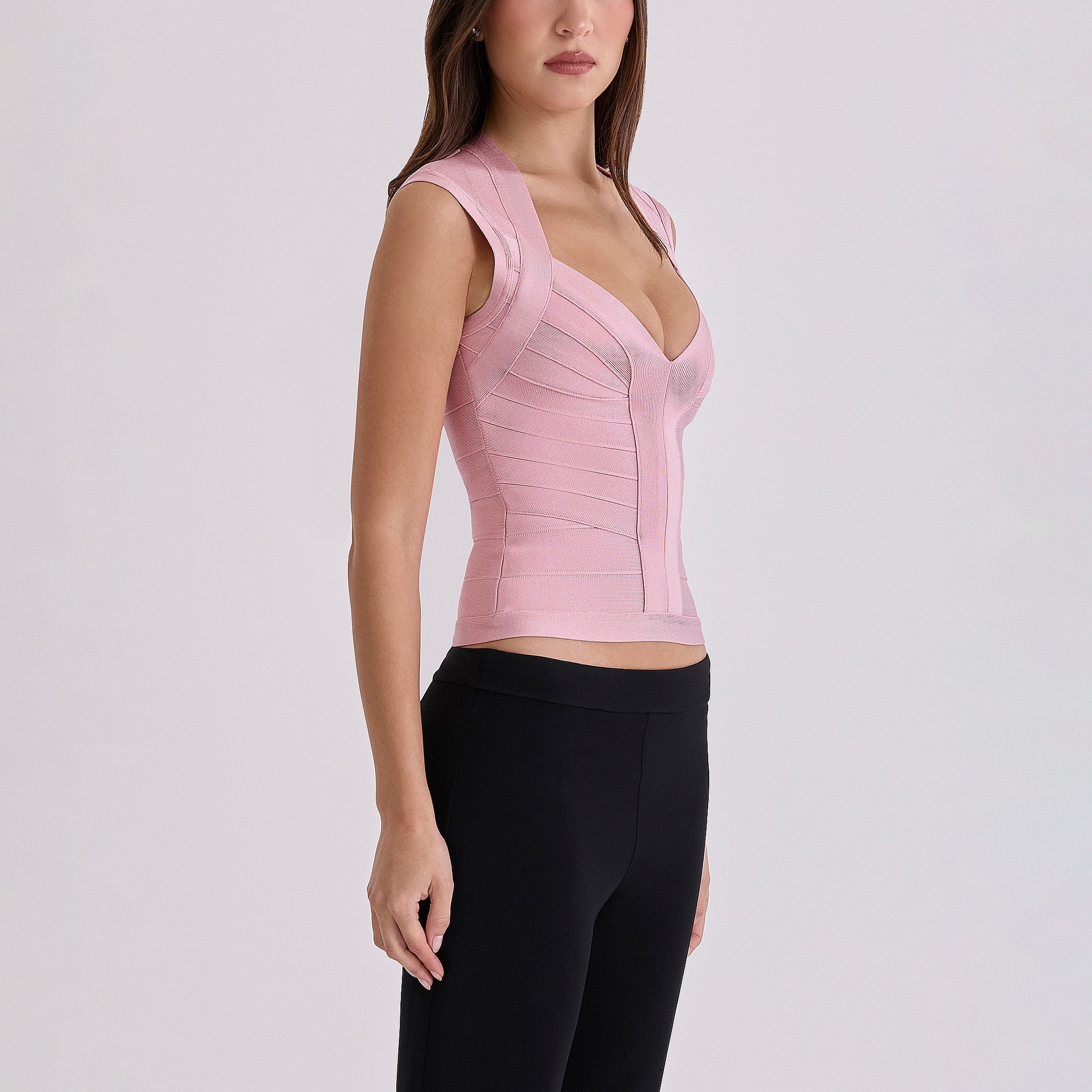 - Heavyweight, tight-tension, ultra stretchy bandage material, sweetheart neckline, angular panelling that cinches the waistline