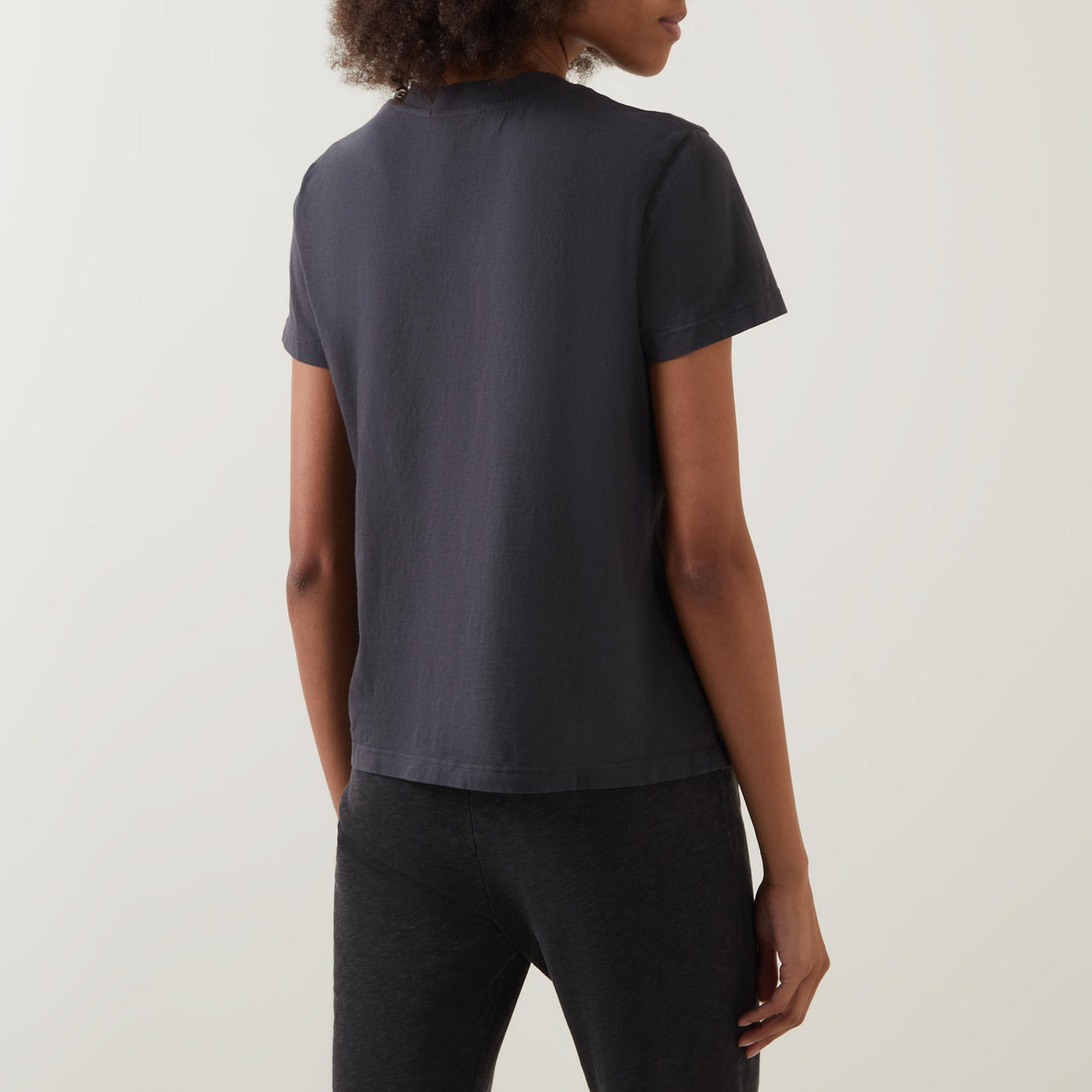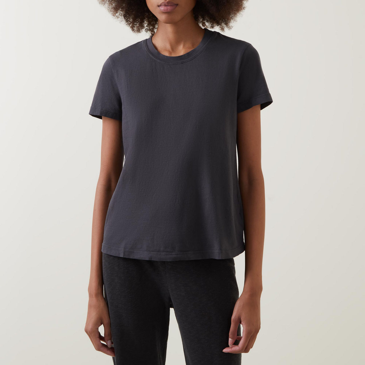 - Garment-dyed, short sleeves, round neck, straight hemline