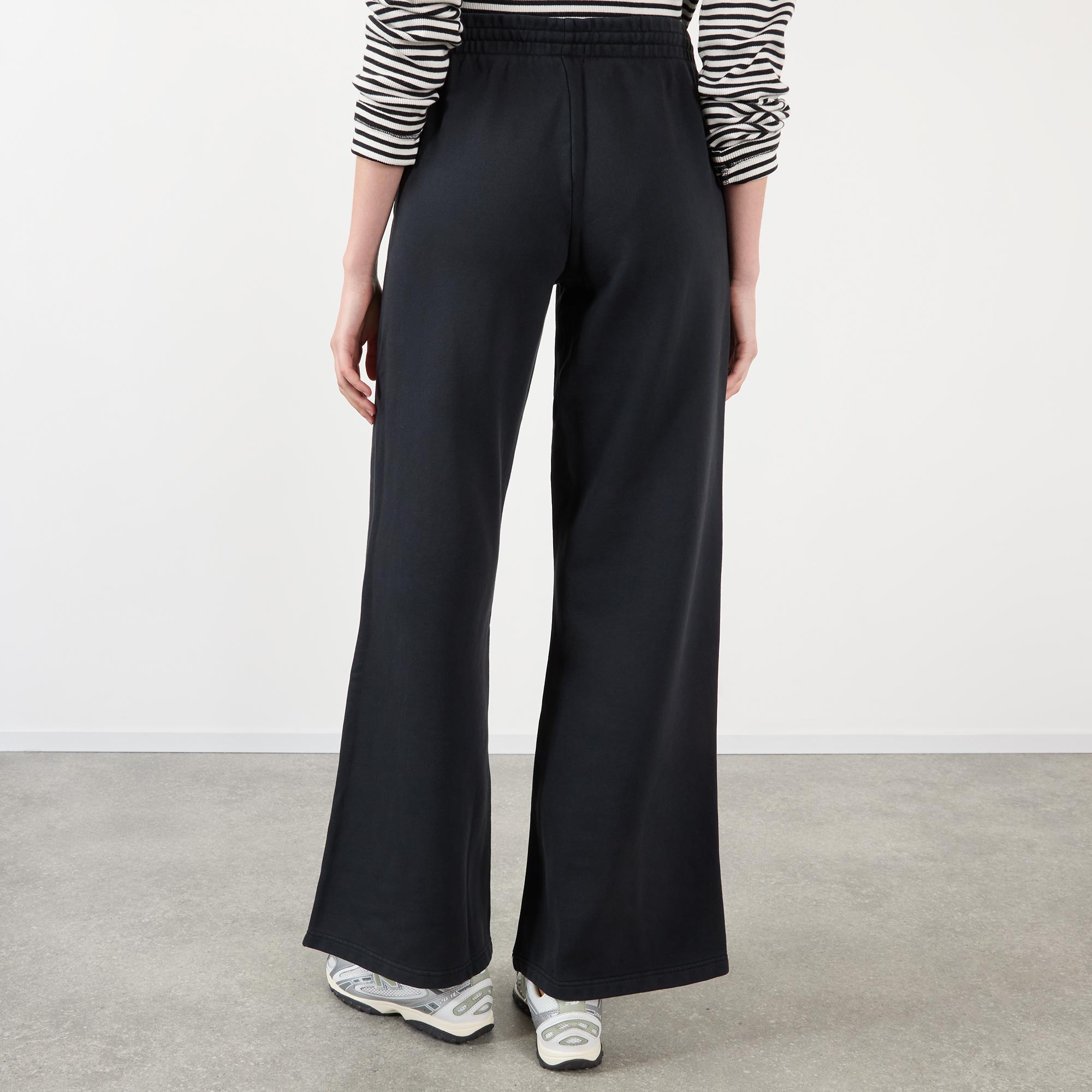 - Mid rise, wide leg, elasticated waistband, concealed drawstring fastening, two side seam pockets, clean hems, vintage-inspired wash, embroidered logo detail