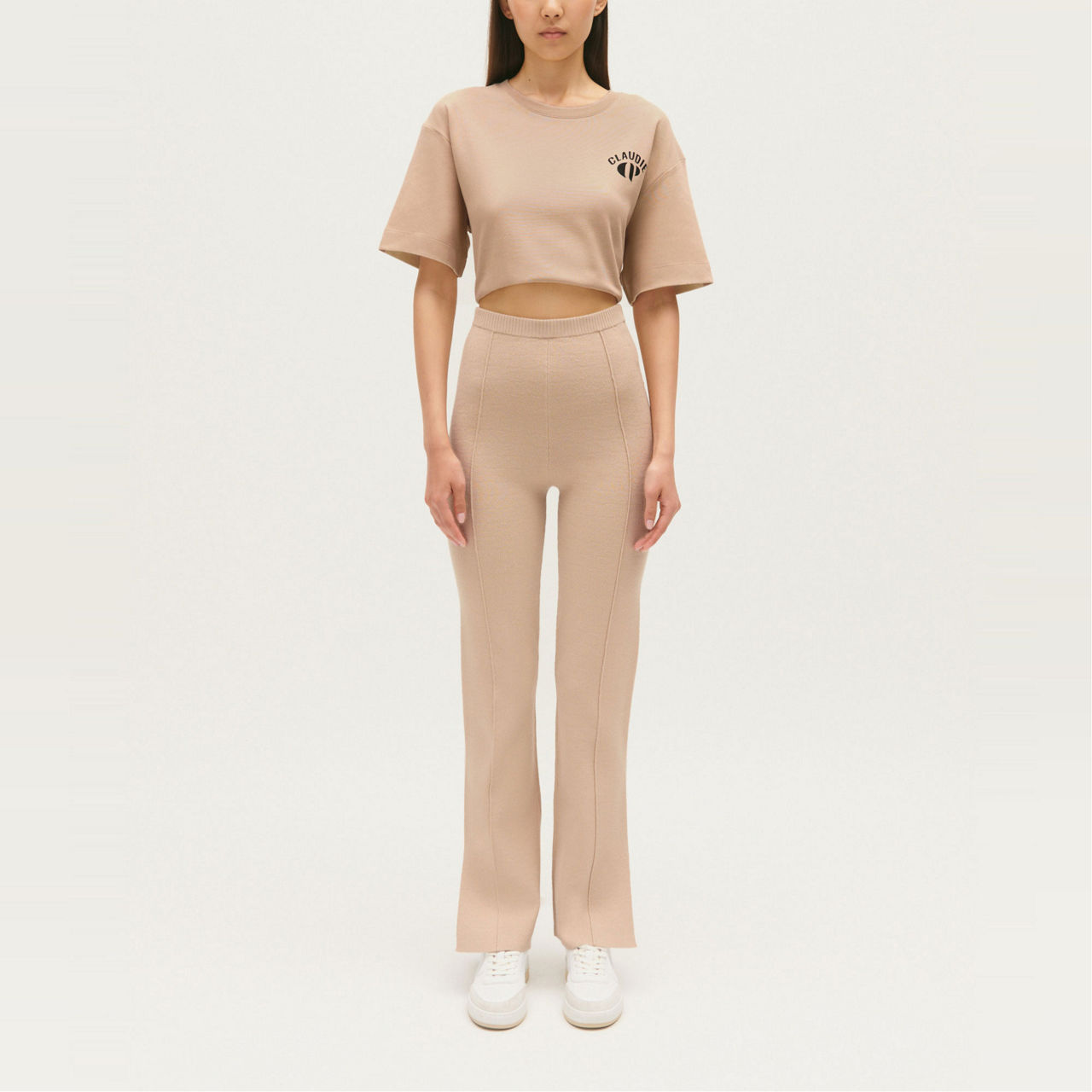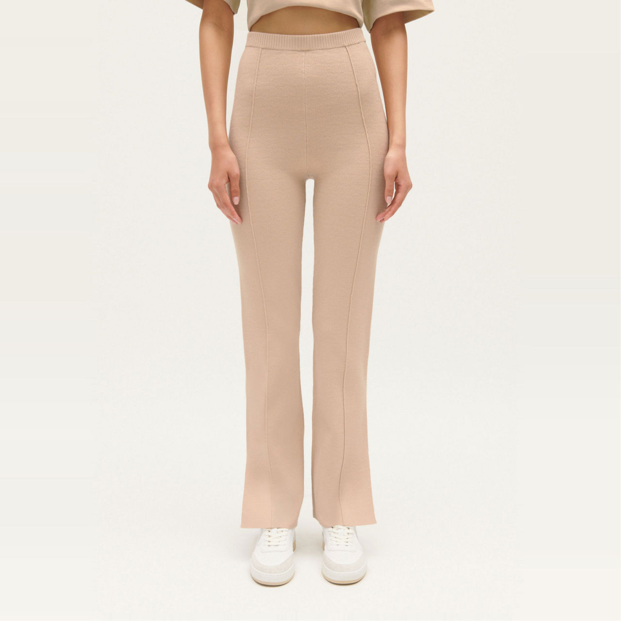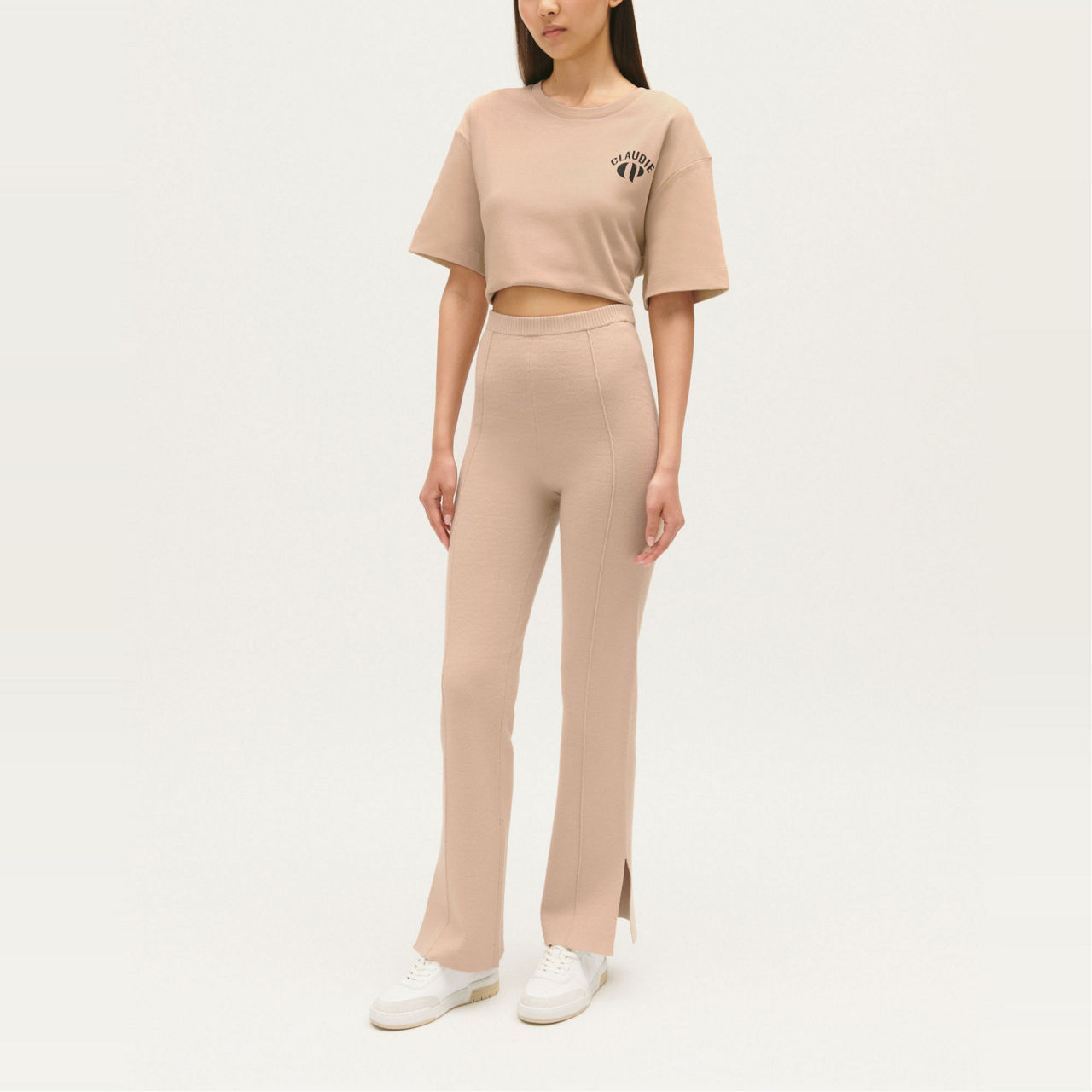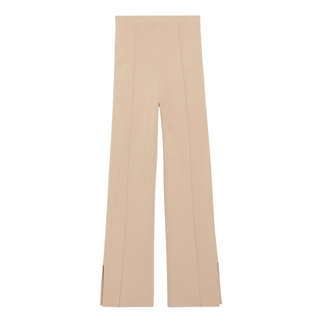 - Mid-rise waist, slits in the hems, elasticated, ribbed waist