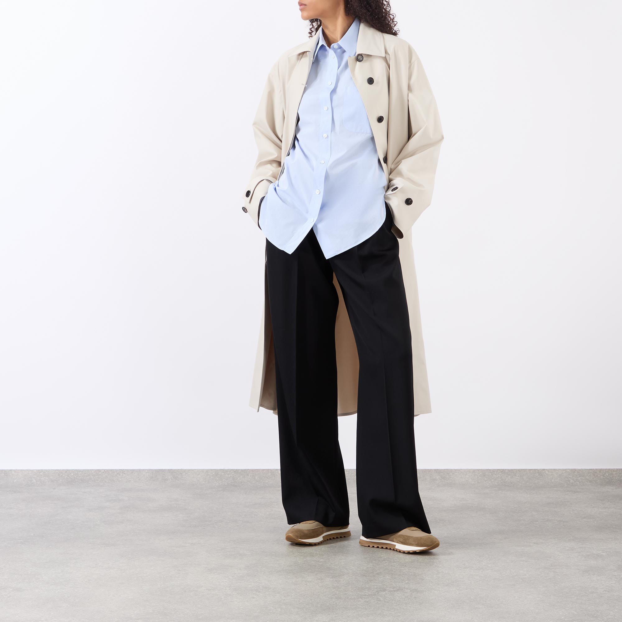 The Virgil trousers from The Row's SS26 collection encapsulates the sleek minimalistic style aesthetic the brand is known for. Cut from a wool gabardine fabric, they sit high on the waist before falling to a full-length straight cut leg, finished with pockets and front double pleats.