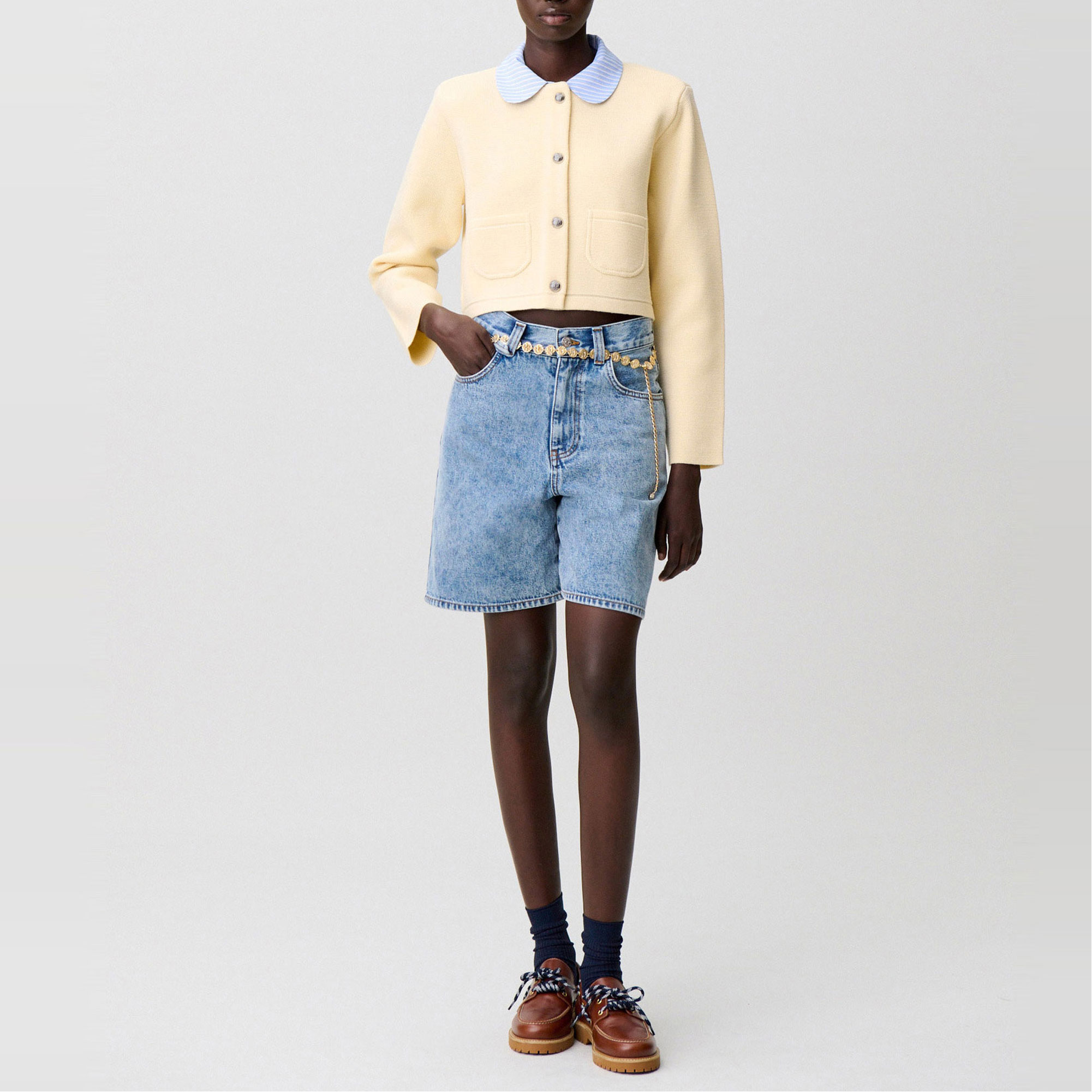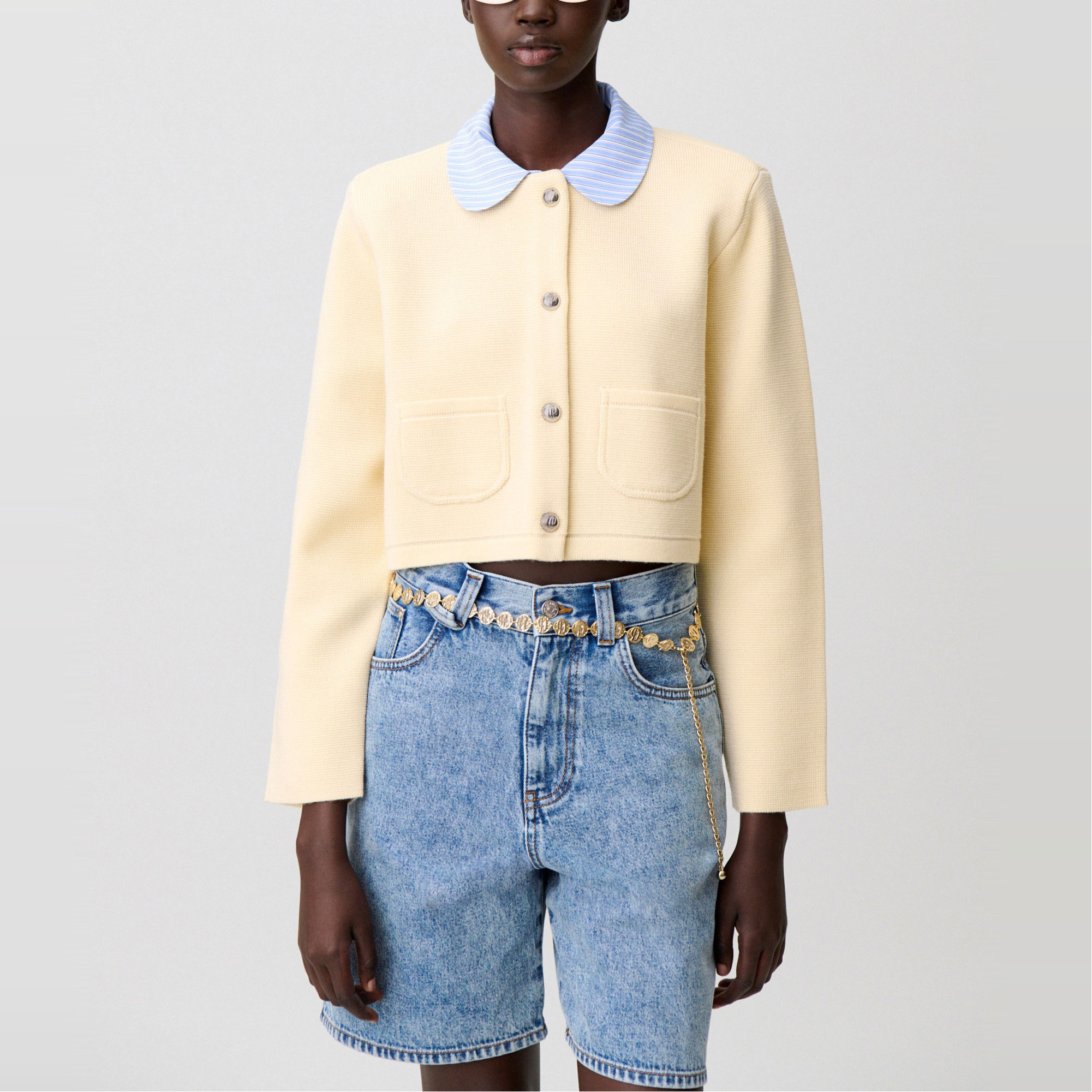 CLAUDIE PIERLOT Contrast Collar Knitted Cardigan