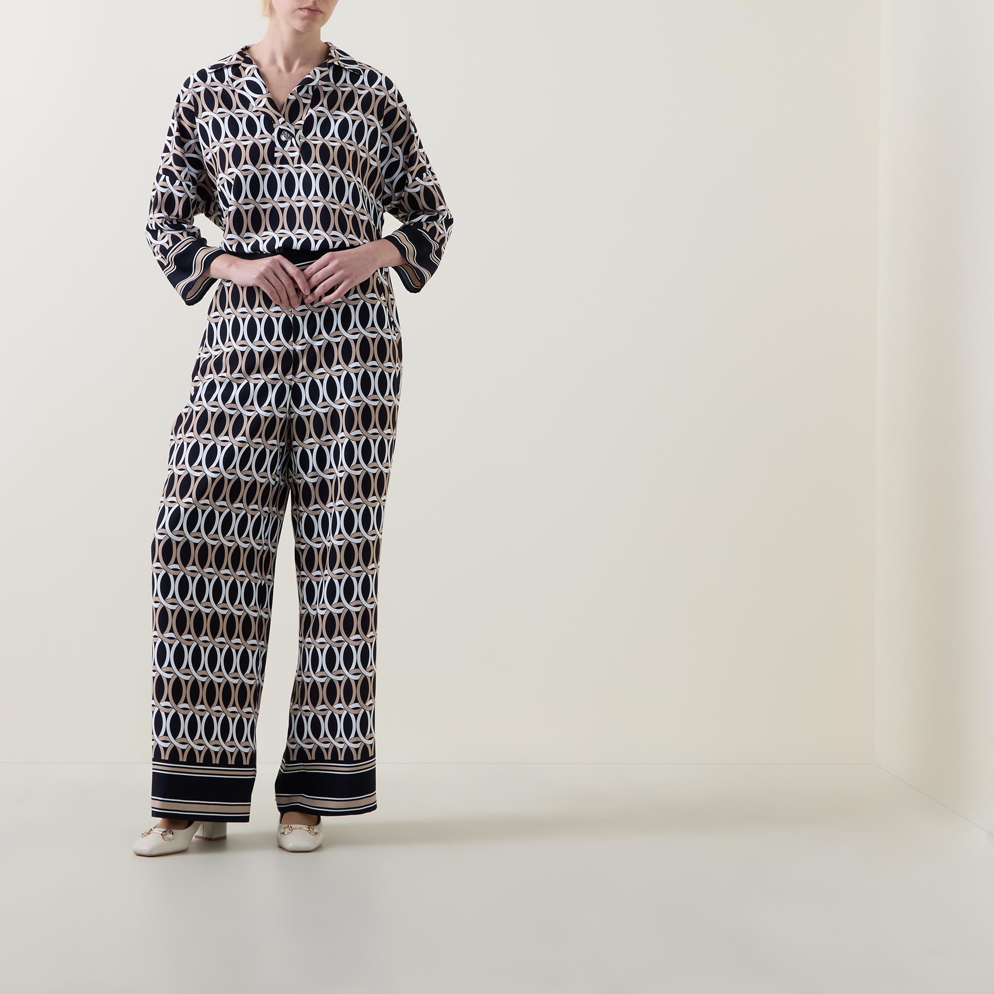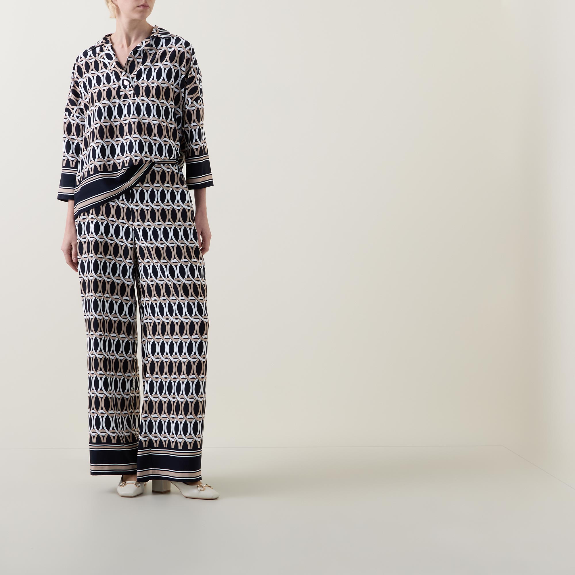 JOSEPH RIBKOFF Graphic Print Wide Leg Trousers