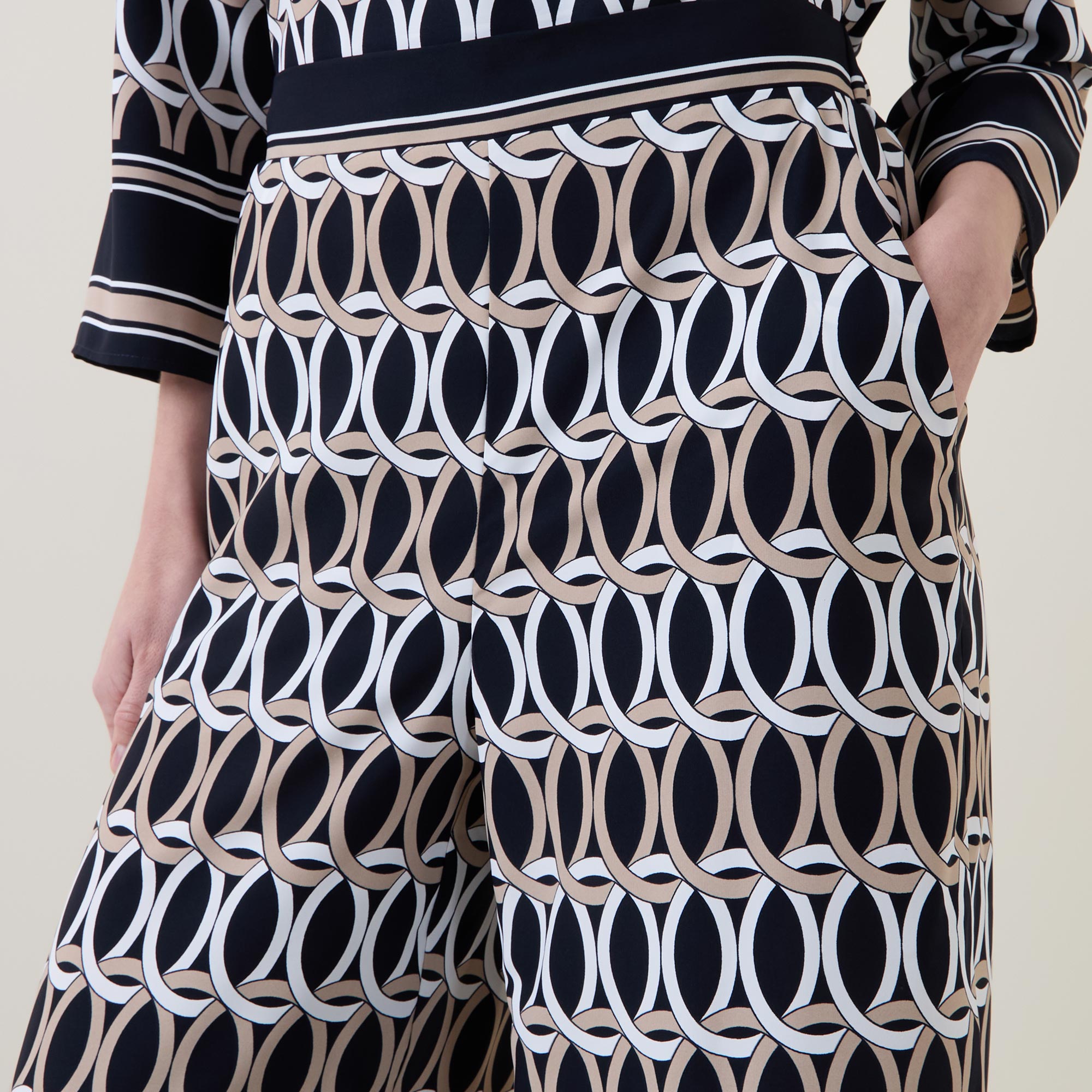 • Elasticated waist, graphic print, wide leg