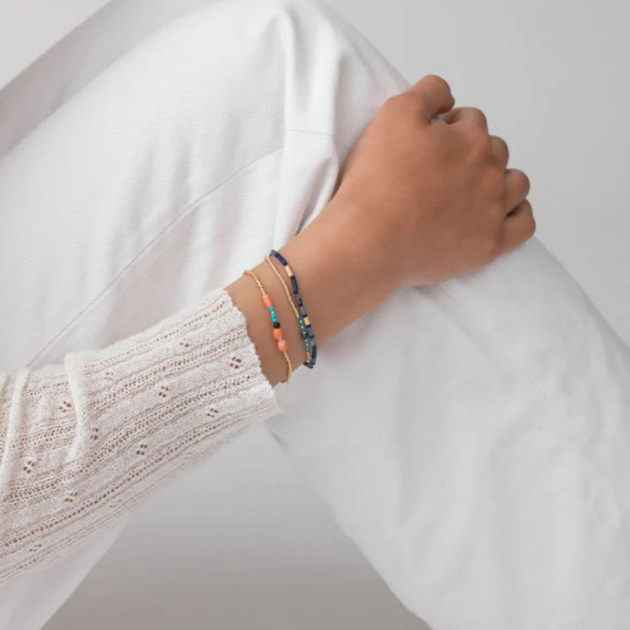 Anni Lu's Riviera Dreams collection is inspired by the golden era of the 1970's when the rich and famous flocked to the Mediterranean coast for a carefree, good time vacation. The Azzuro bracelet features a blend of light and deep blue beads, reminiscent of the sea and its movements.