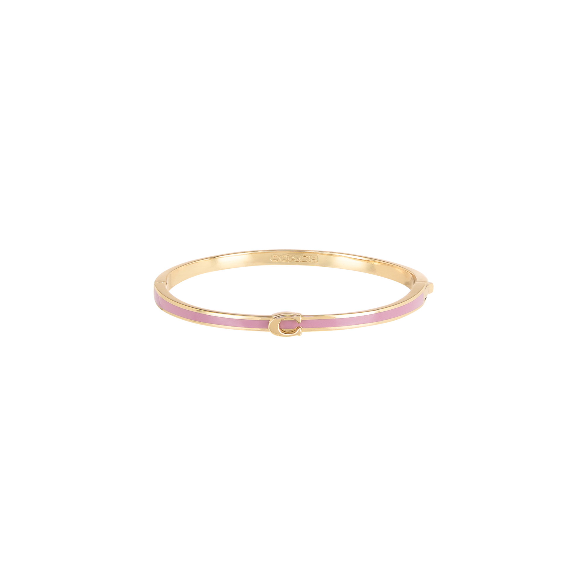 - Hinge fastening, C logo hardware, engraved logo, bangle style, polished gold-tone finishes