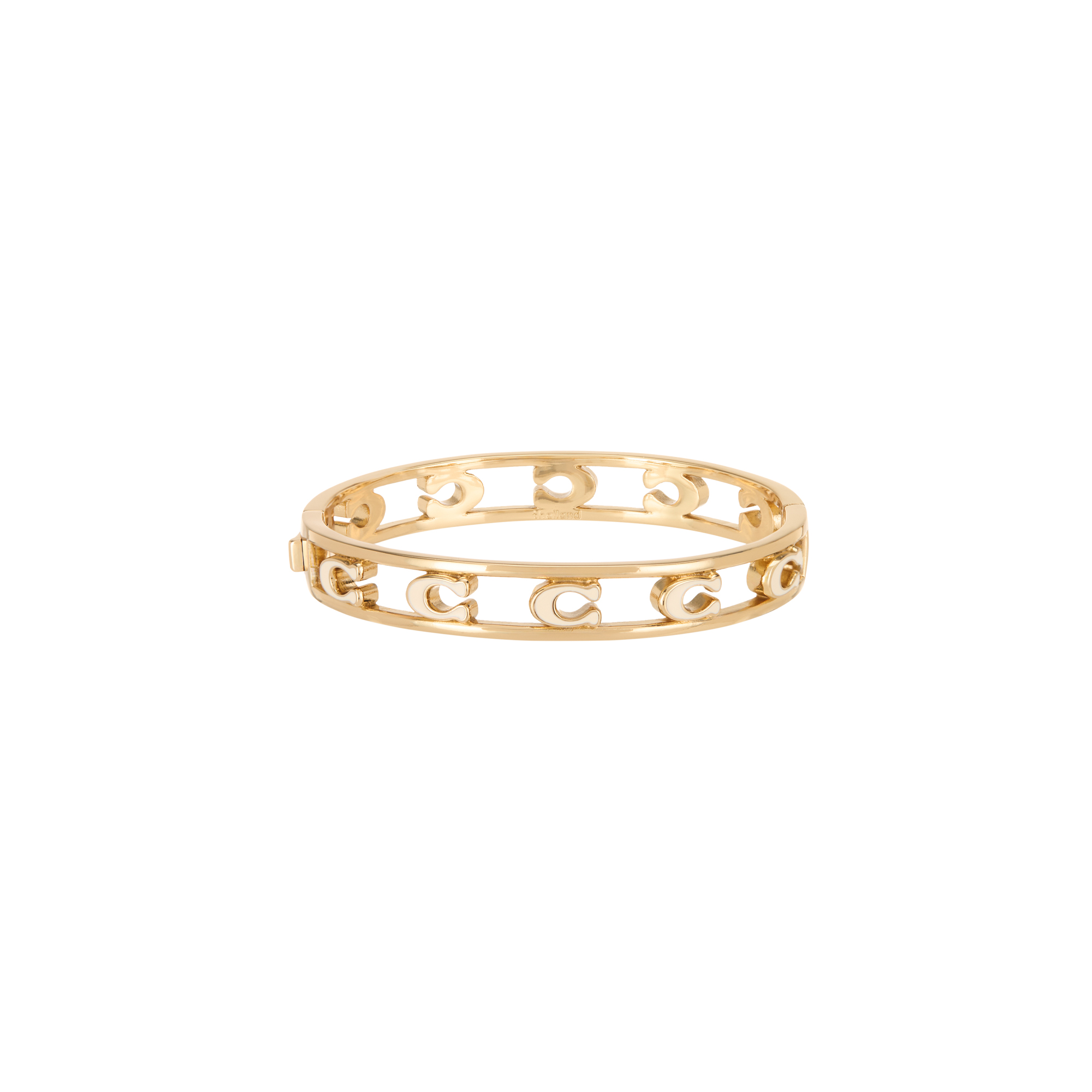 - Hinged design, open cut-out detailing, repeat C-logo silhouette, gold-tone finish