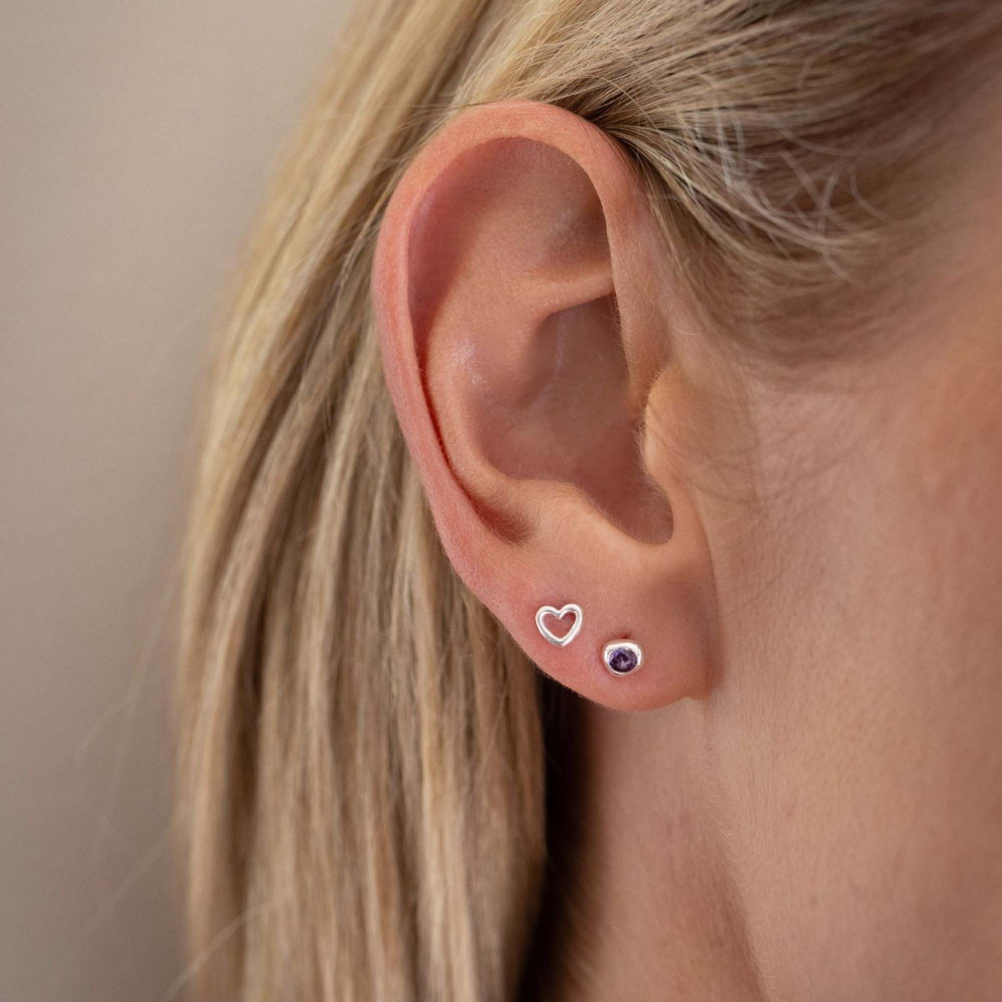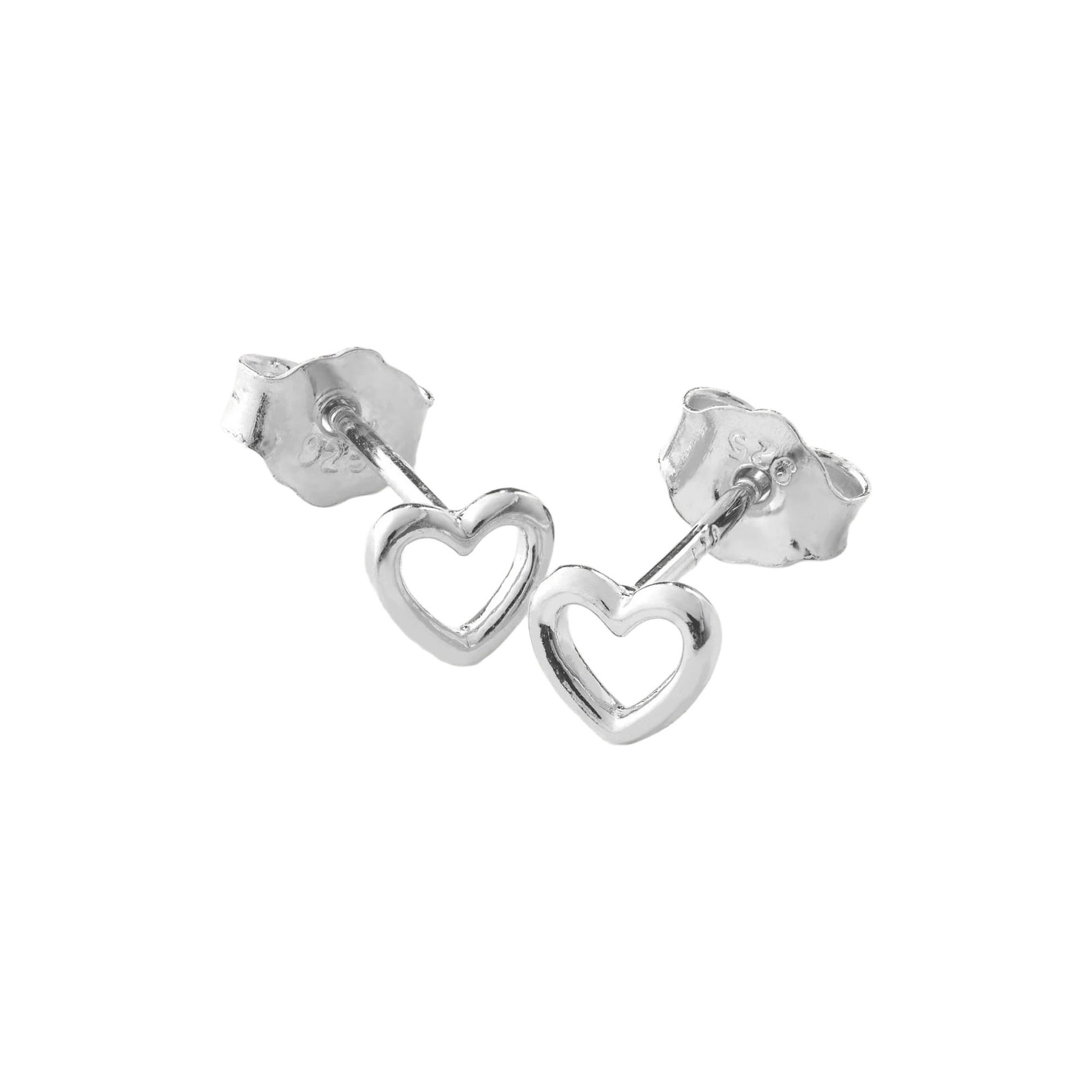 - Stud style, heart-shaped design, sterling silver