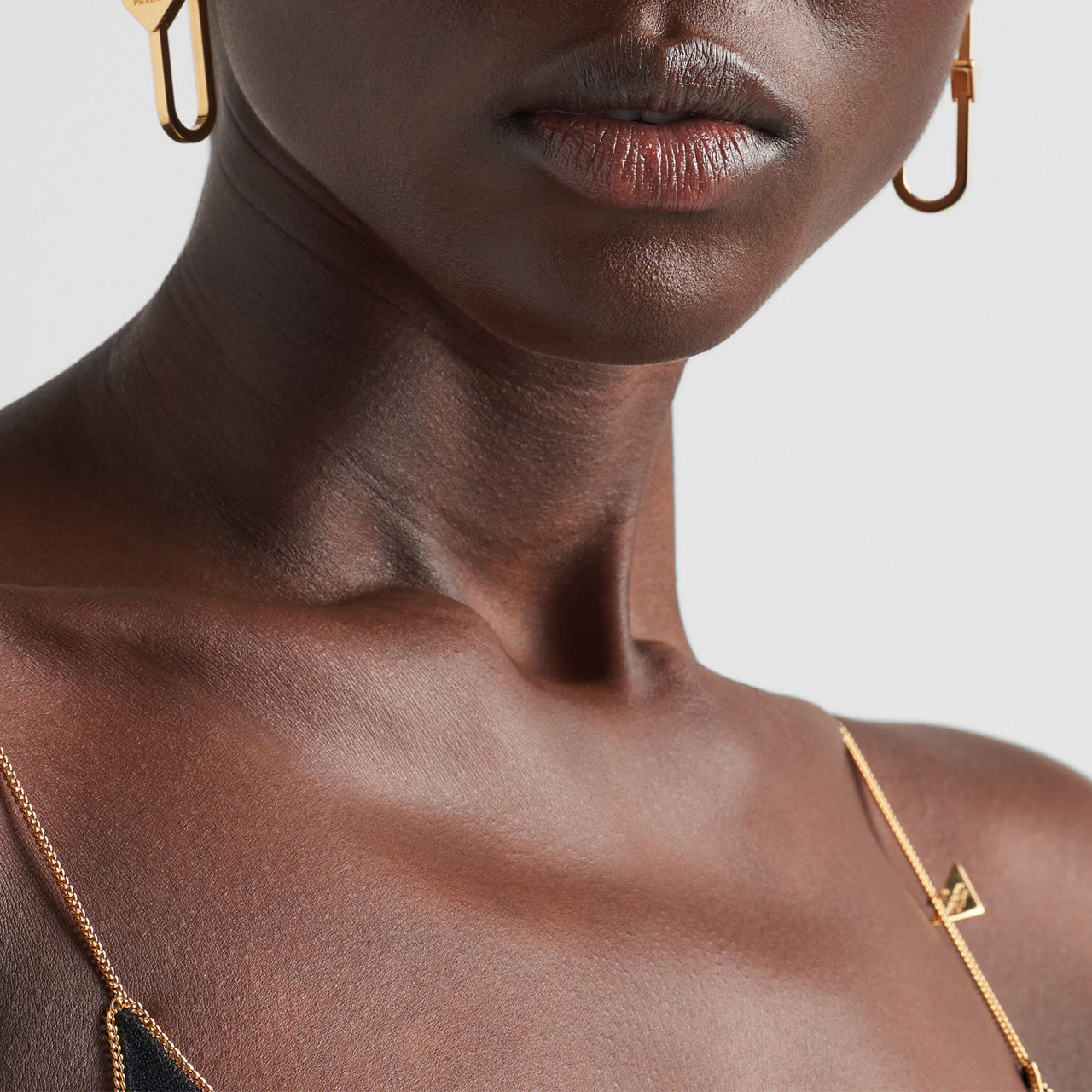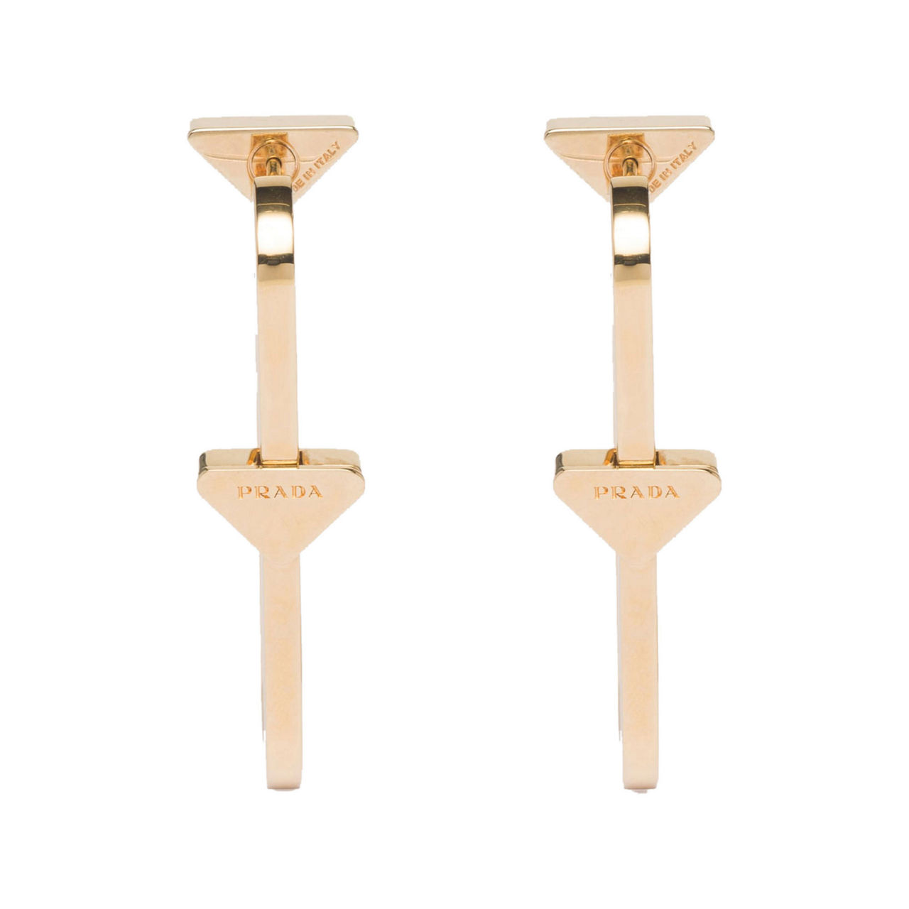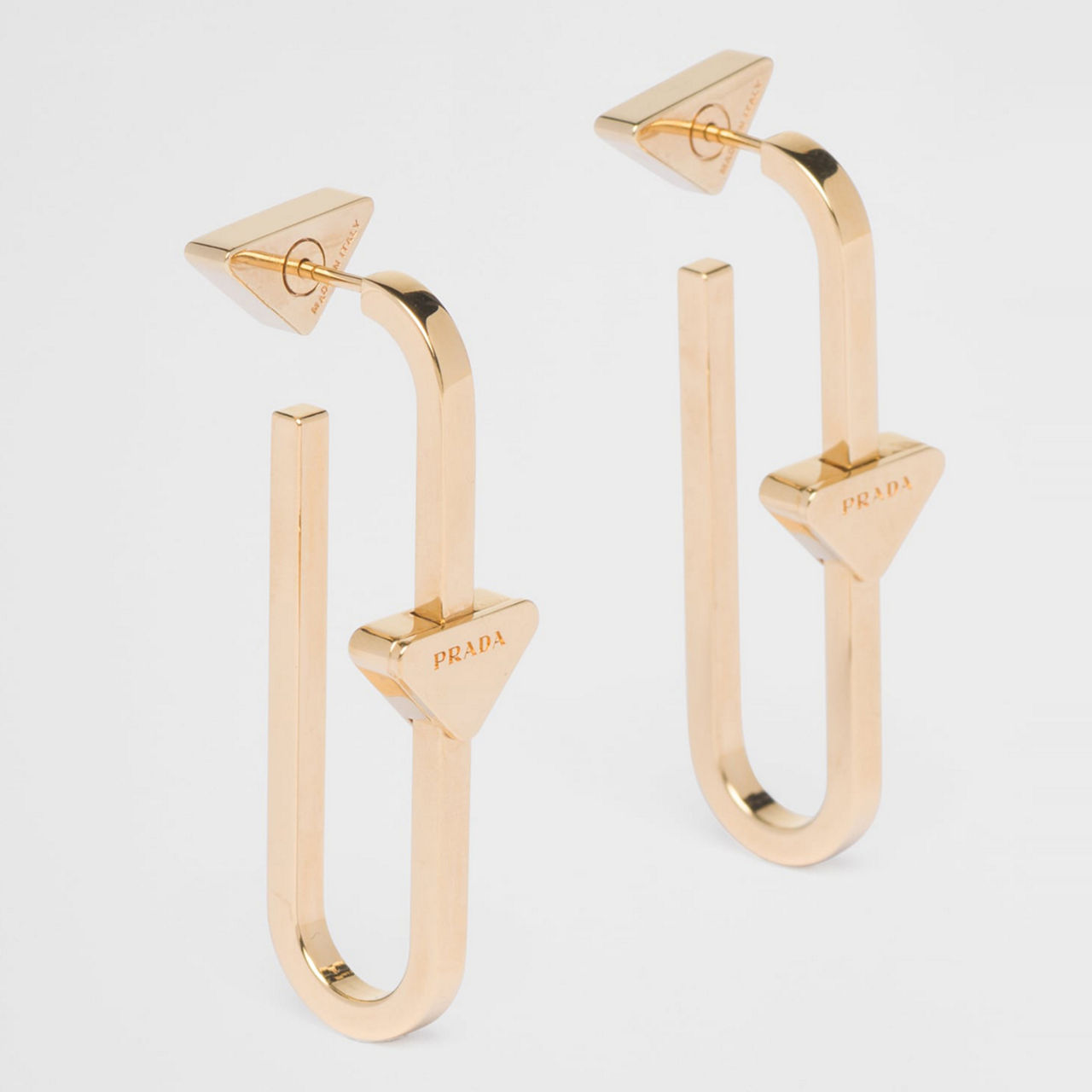 Hoop earrings are an essential part of any accessory collection. This pair of minimalist hoop earrings from Prada feature a slim, oval silhouette and the brand’s iconic triangular logo.