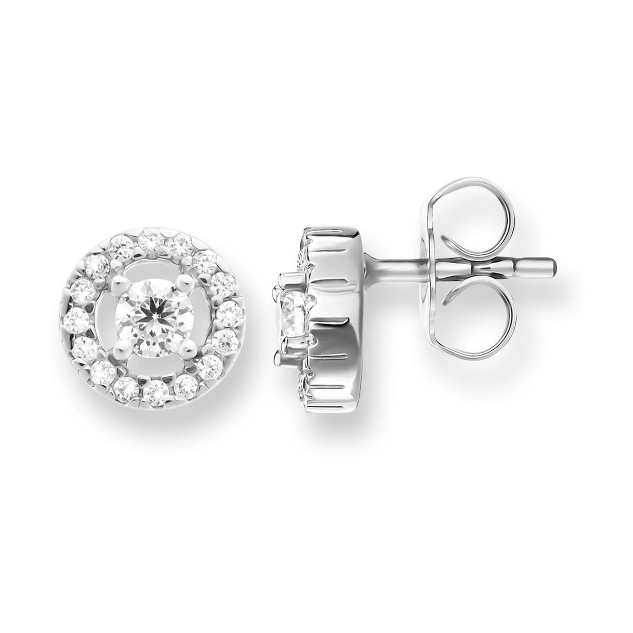 Thomas Sabo's Light of Luna Ear studs from the Glam & Soul collection. The elegant classic style ear studs are crafted from 925 Sterling silver. Small zirconia stones encase a larger single stone that is the focal point of this piece. Gift this to a loved one to let them know that they are the light of your life.