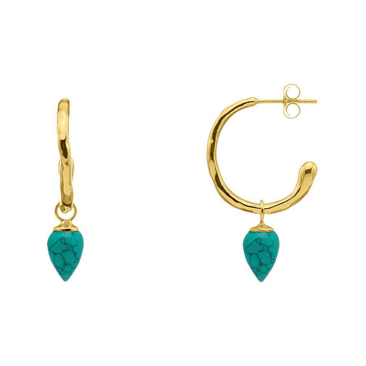 - Gently textured, drop style, can be worn alone or with removable Turquoise gemstones, stud fastening