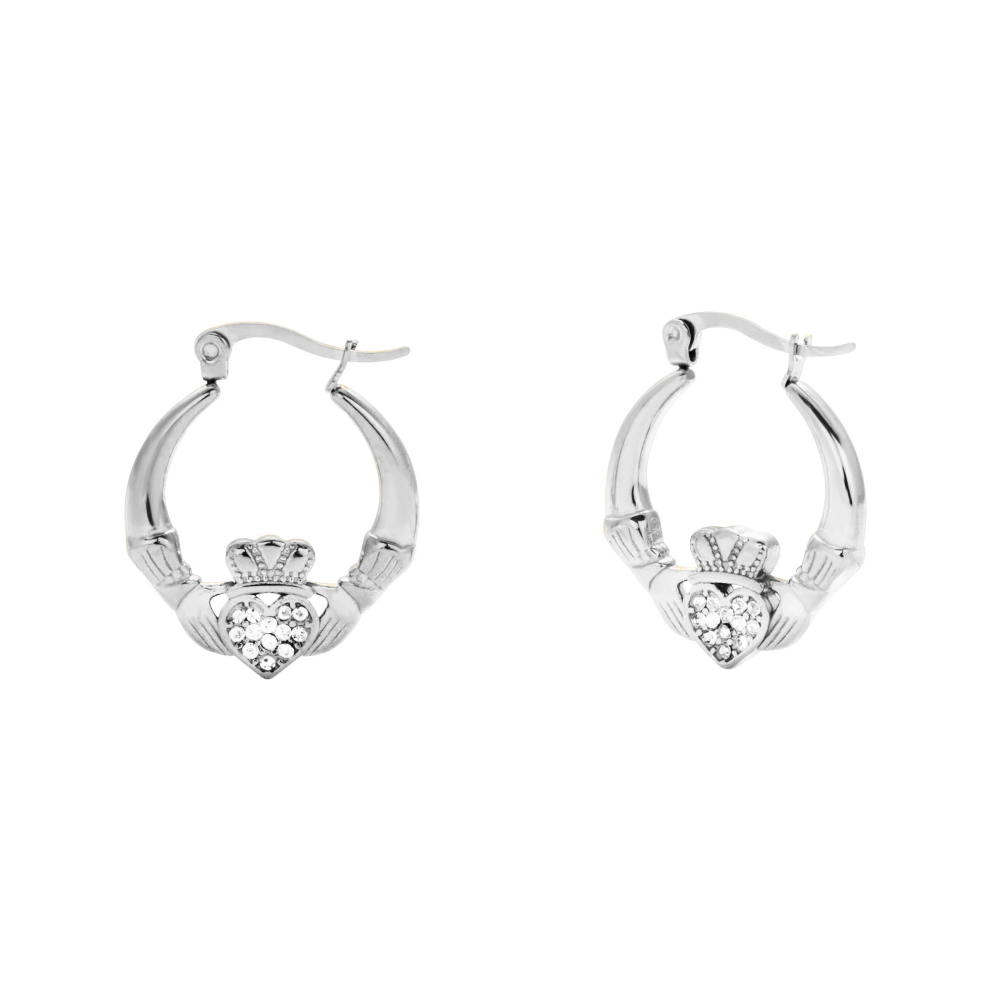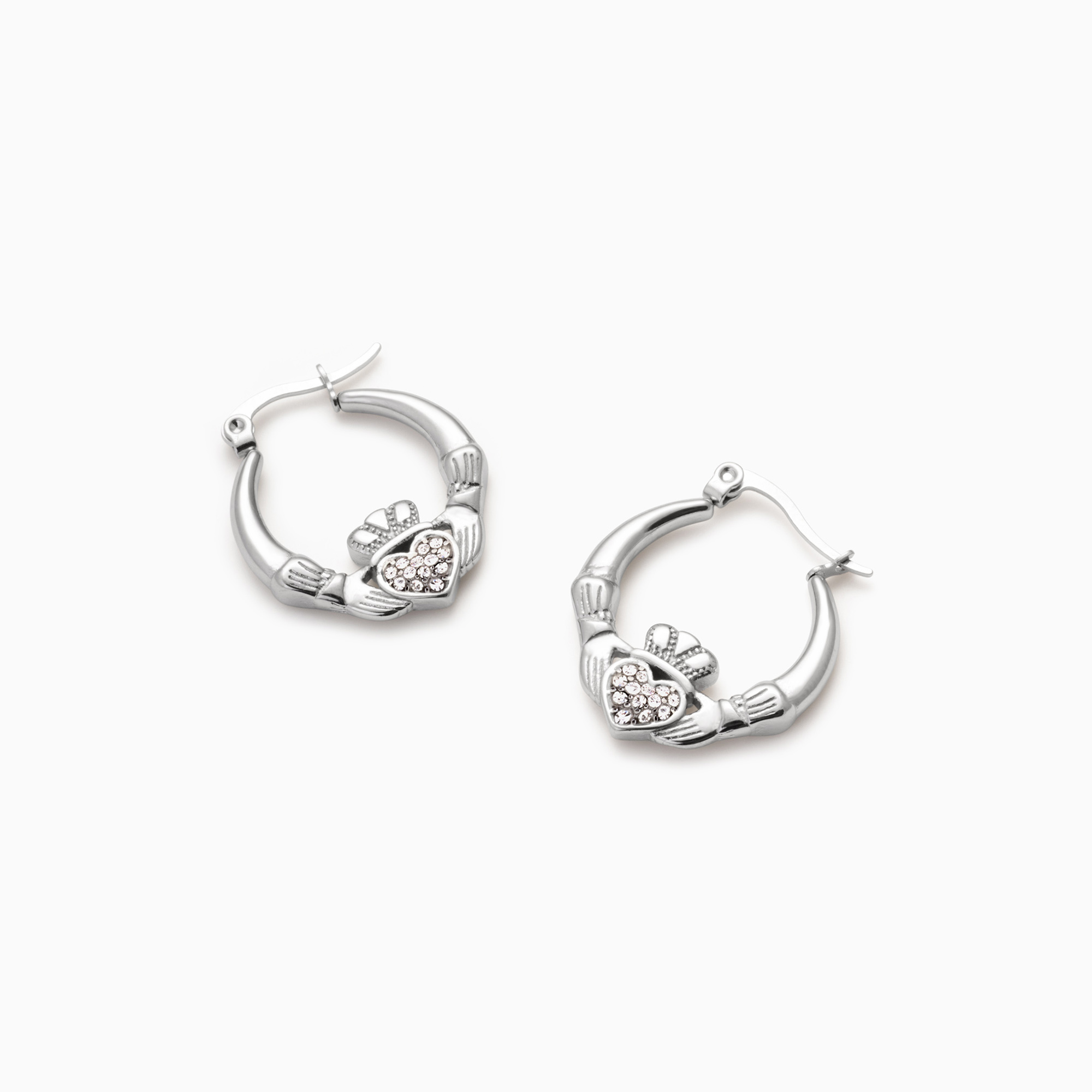 - Hoop style, heart shape, Claddagh details, protective anti-tarnish layer, water-resistant, green-proof for lasting wear