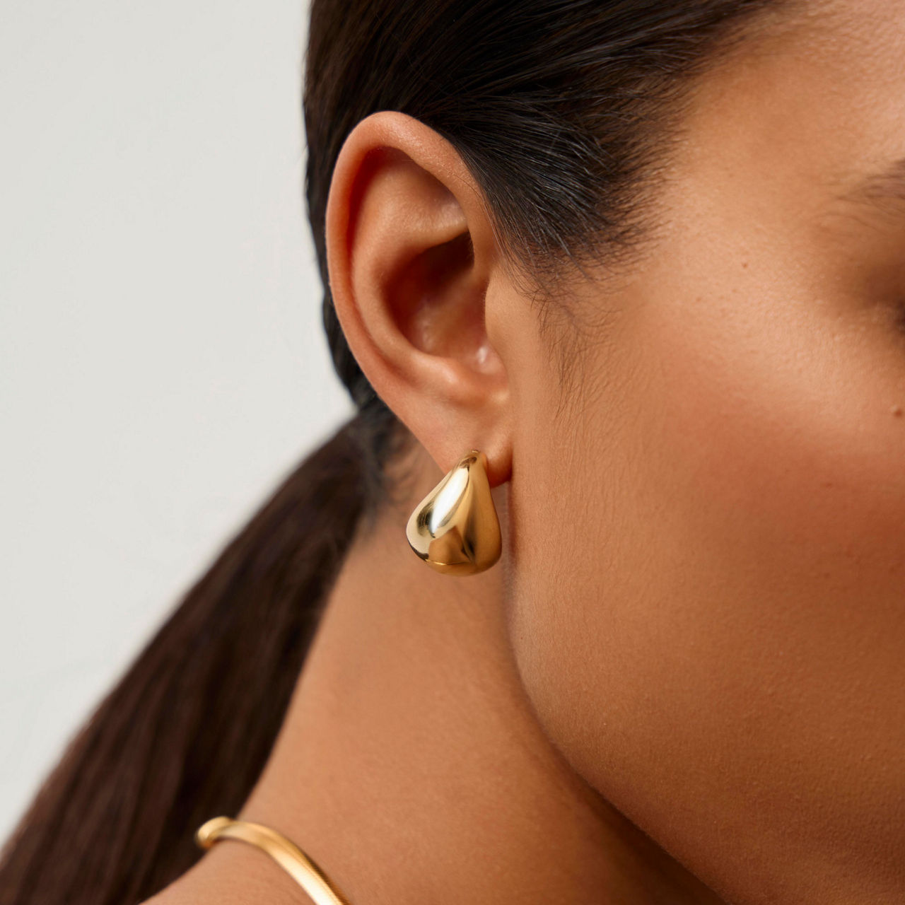- Sculptural Air' collection, inspired by sculptural shapes, lightweight, small chunky hoop style, molten-domed design, latch fastening