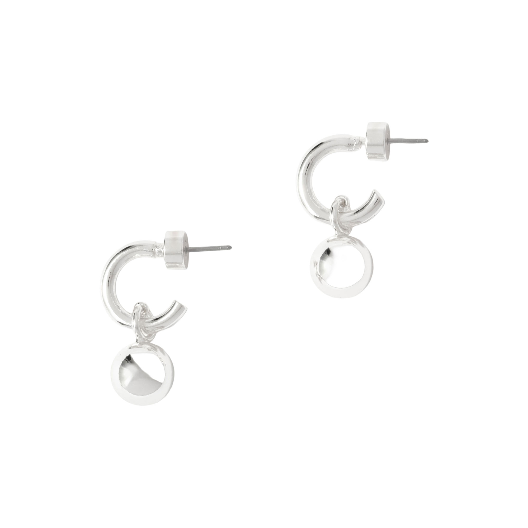 - Silver-tone finish, hoop style, hanging sphere pendant, clasp fastening