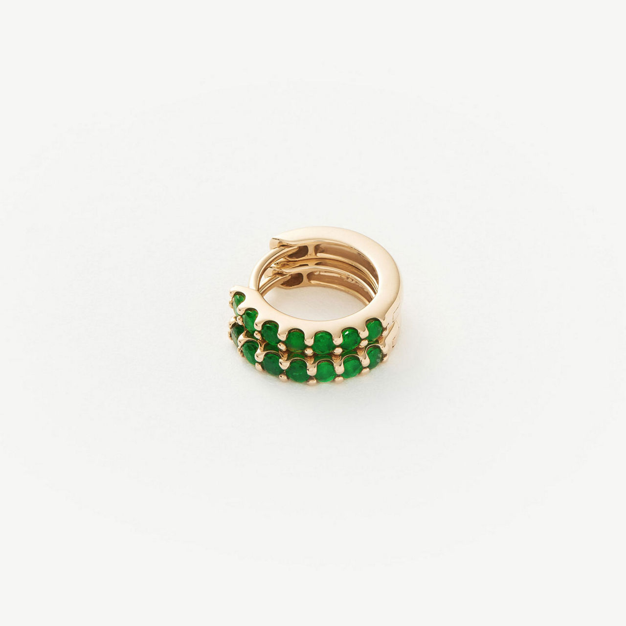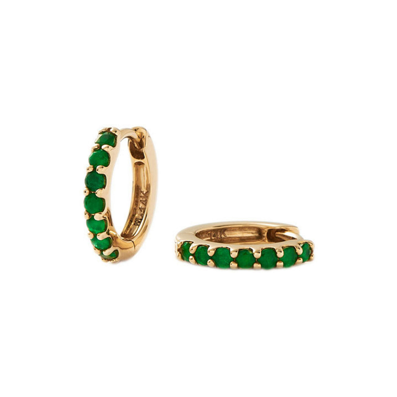 - Huggies, round-cut emeralds, hinge closure, handcrafted from 100% certified recycled solid gold