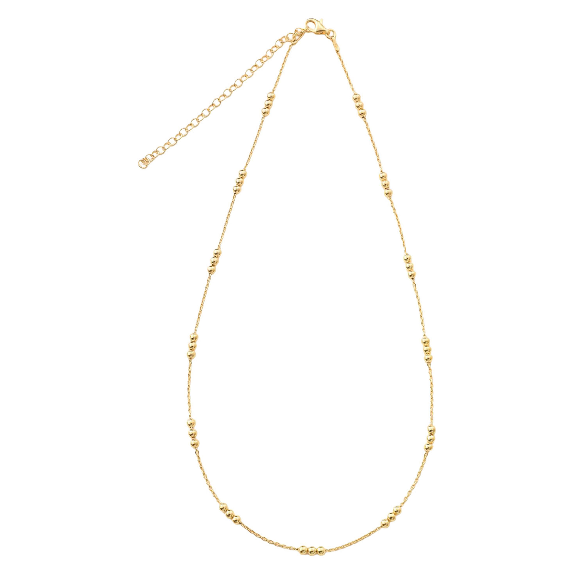 - Gold vermeil, delicate chain, polished beads, adjustable clasp fastening