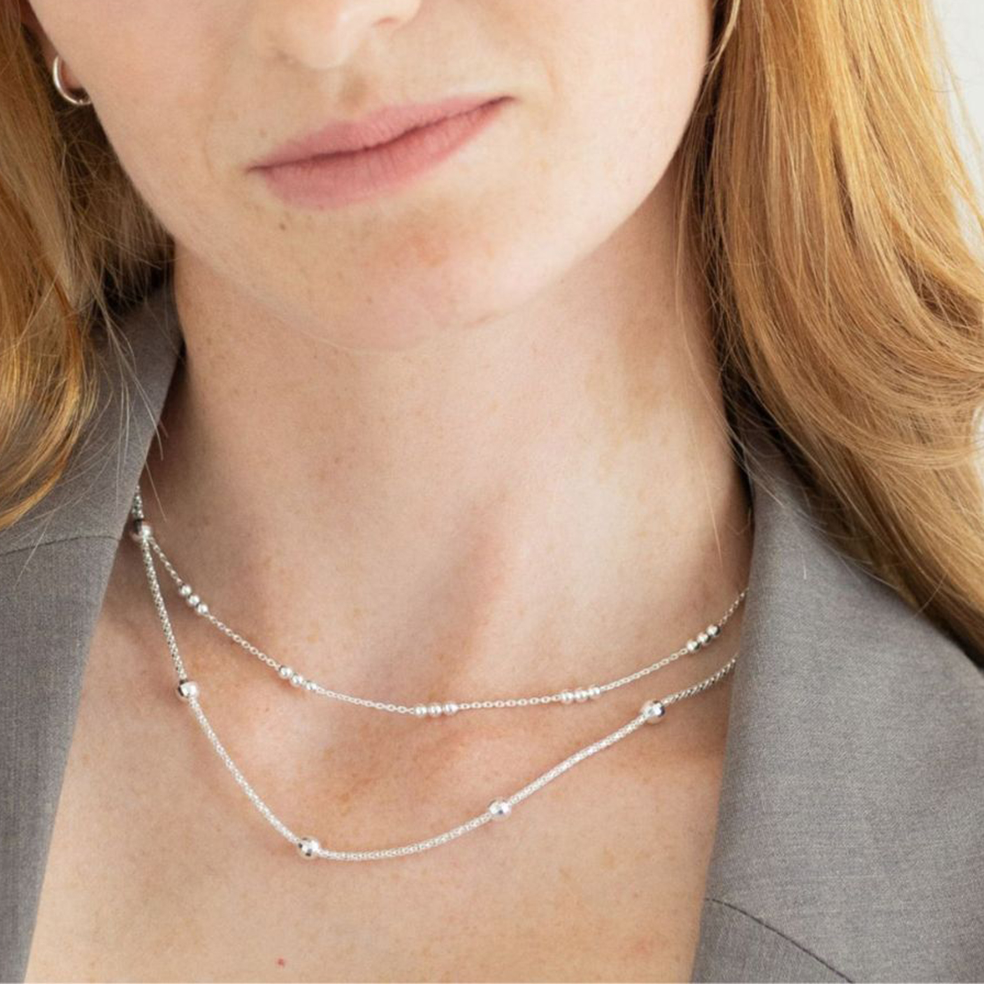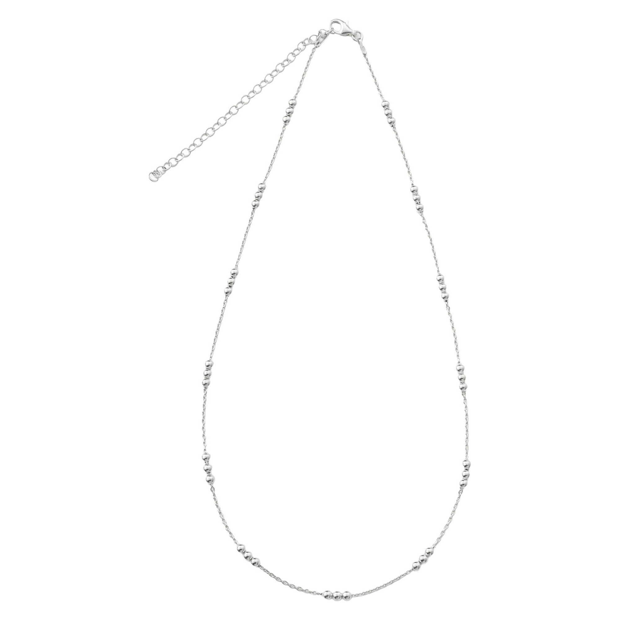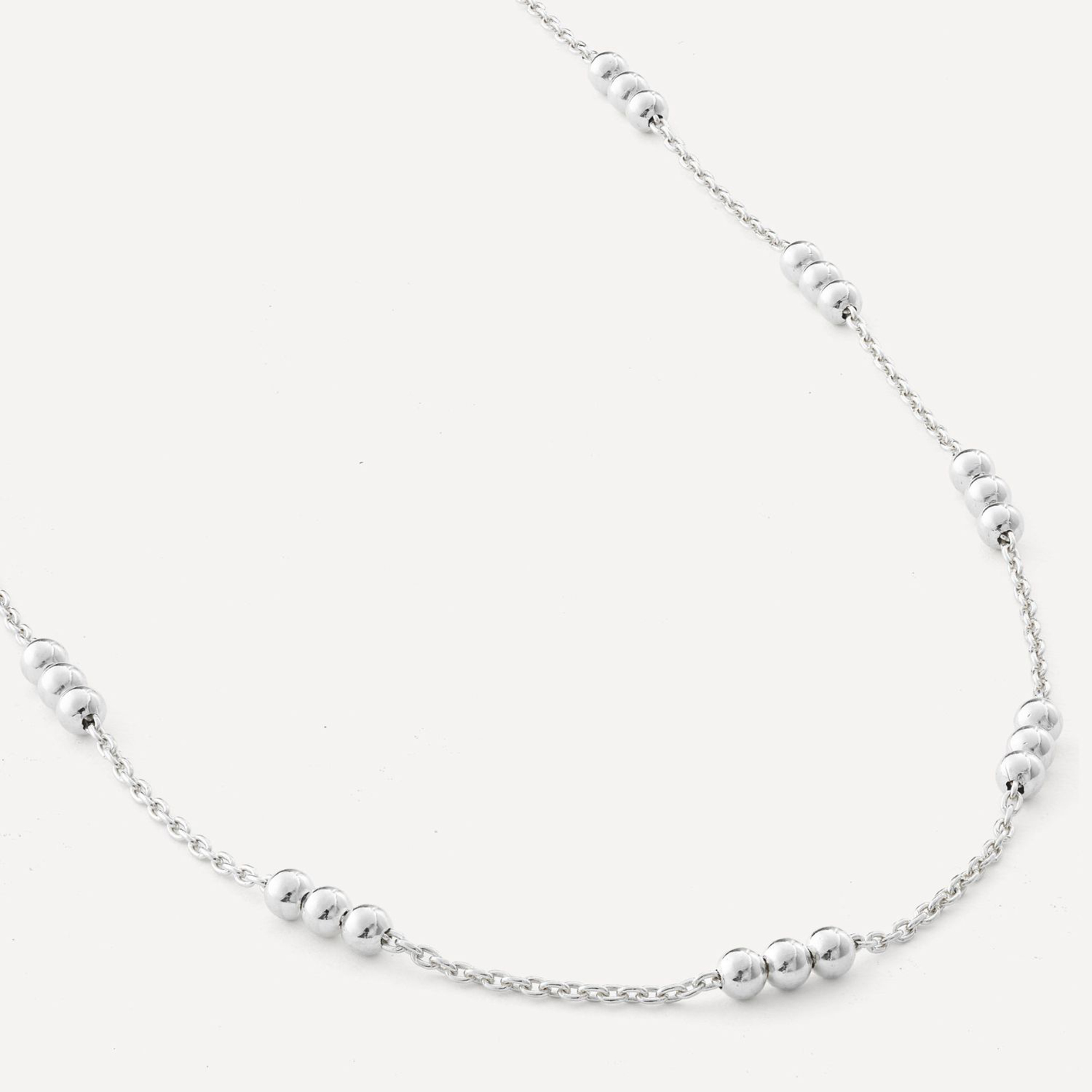 - Silver, delicate chain, polished beads, adjustable clasp fastening