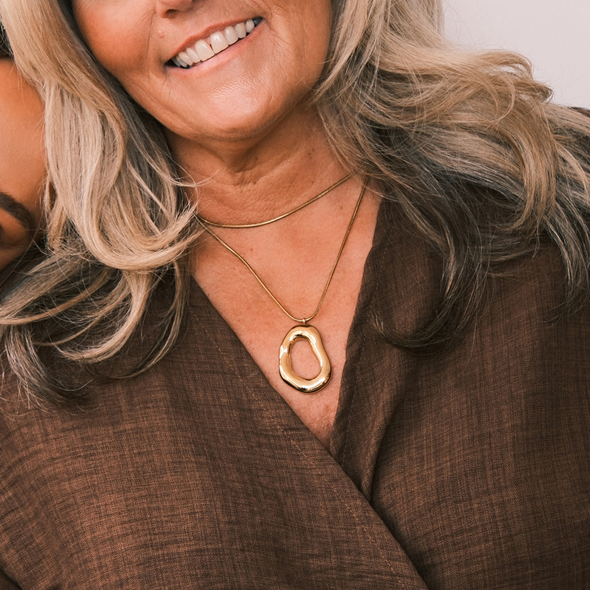 • Oversized pendant, chain, stainless steel base, 18kt gold-plating, water-resistant, tarnish-resistant