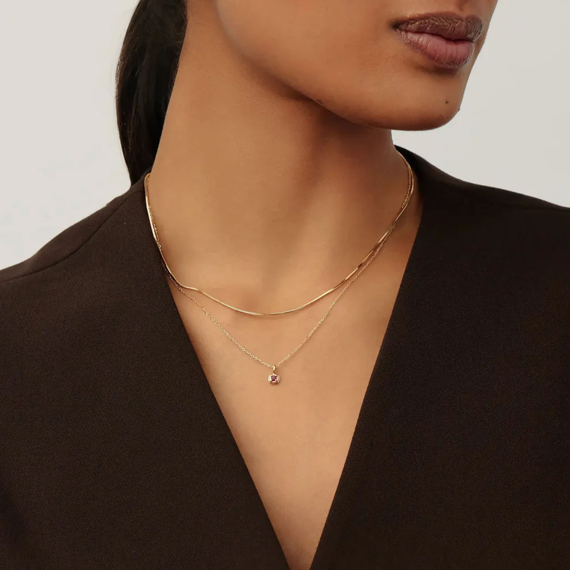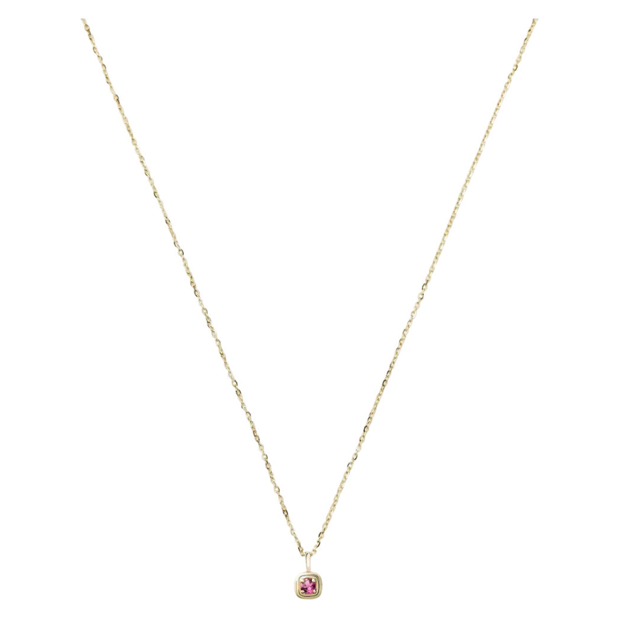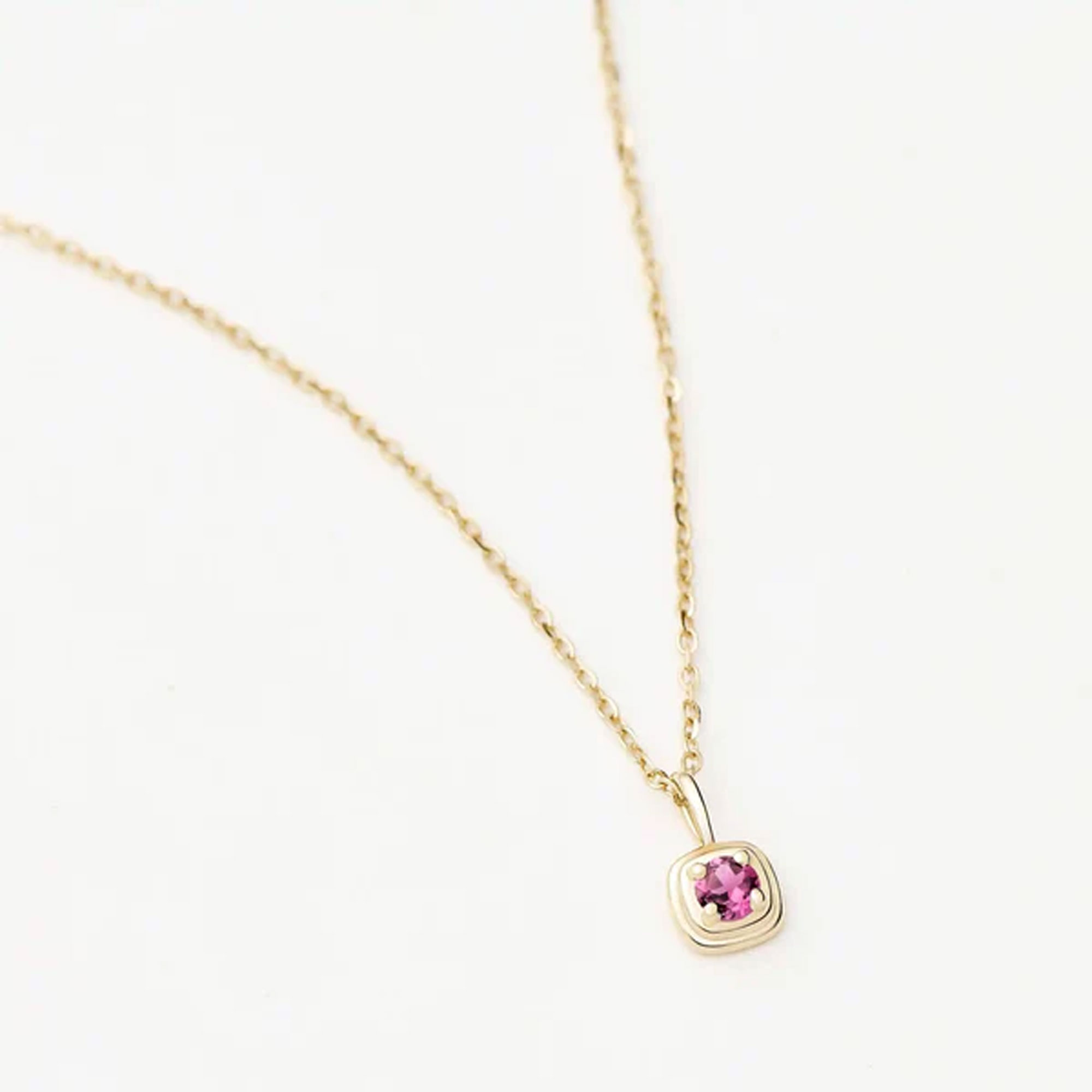 - October birthstone design, 14kt solid gold, double ridged removable pendant, natural pink tourmaline gemstone symbolising love and compassion, solid gold chain, lobster clasp fastening