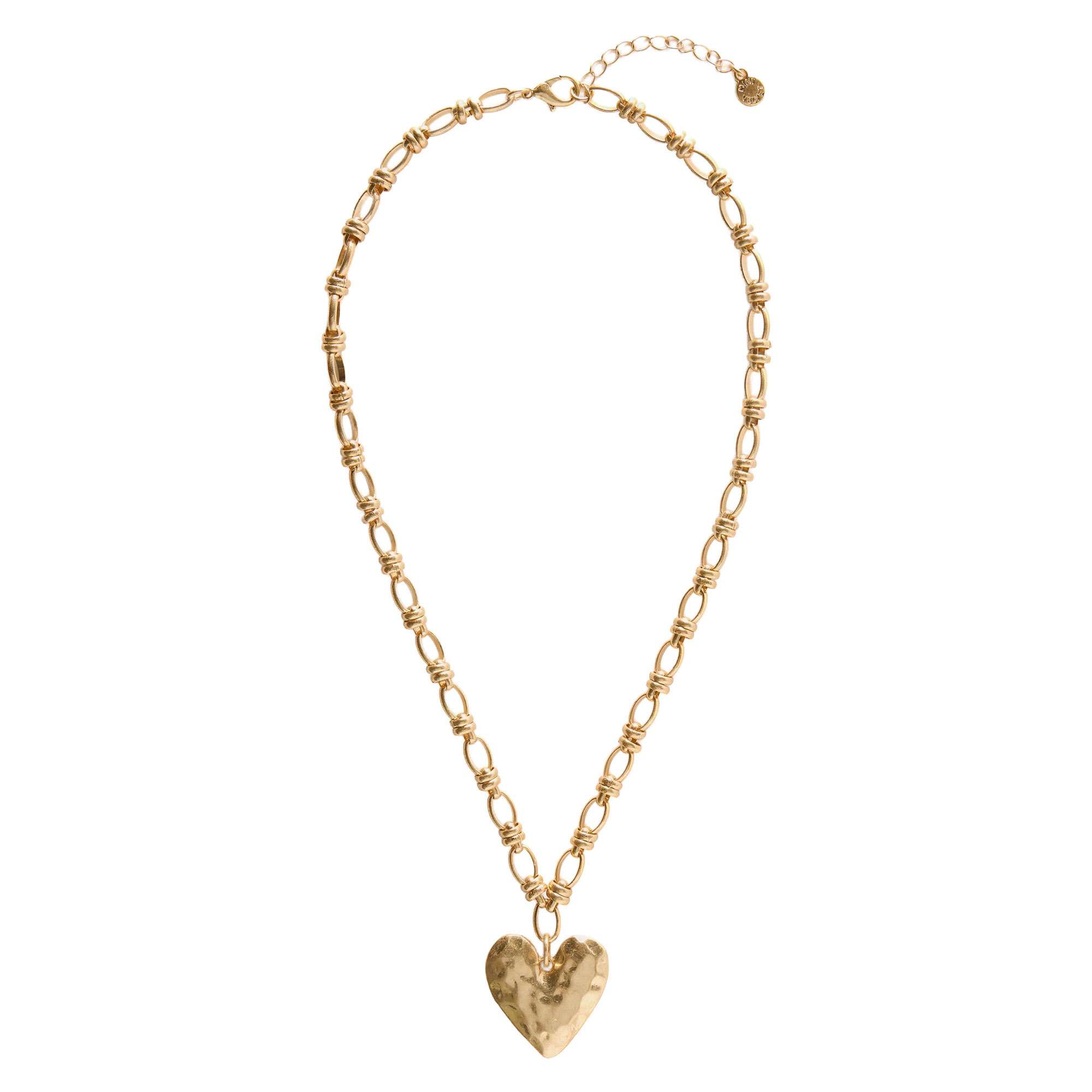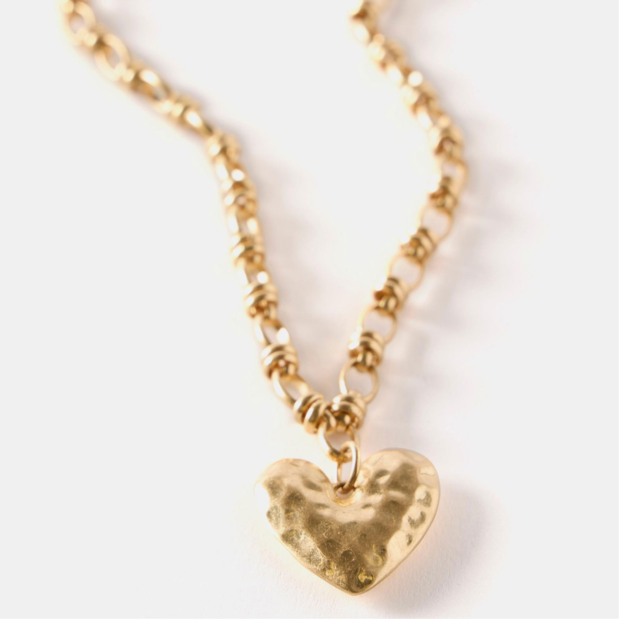 - Gold-tone finish, chain, hammered effect, heart pendant, adjustable lobster clasp fastening