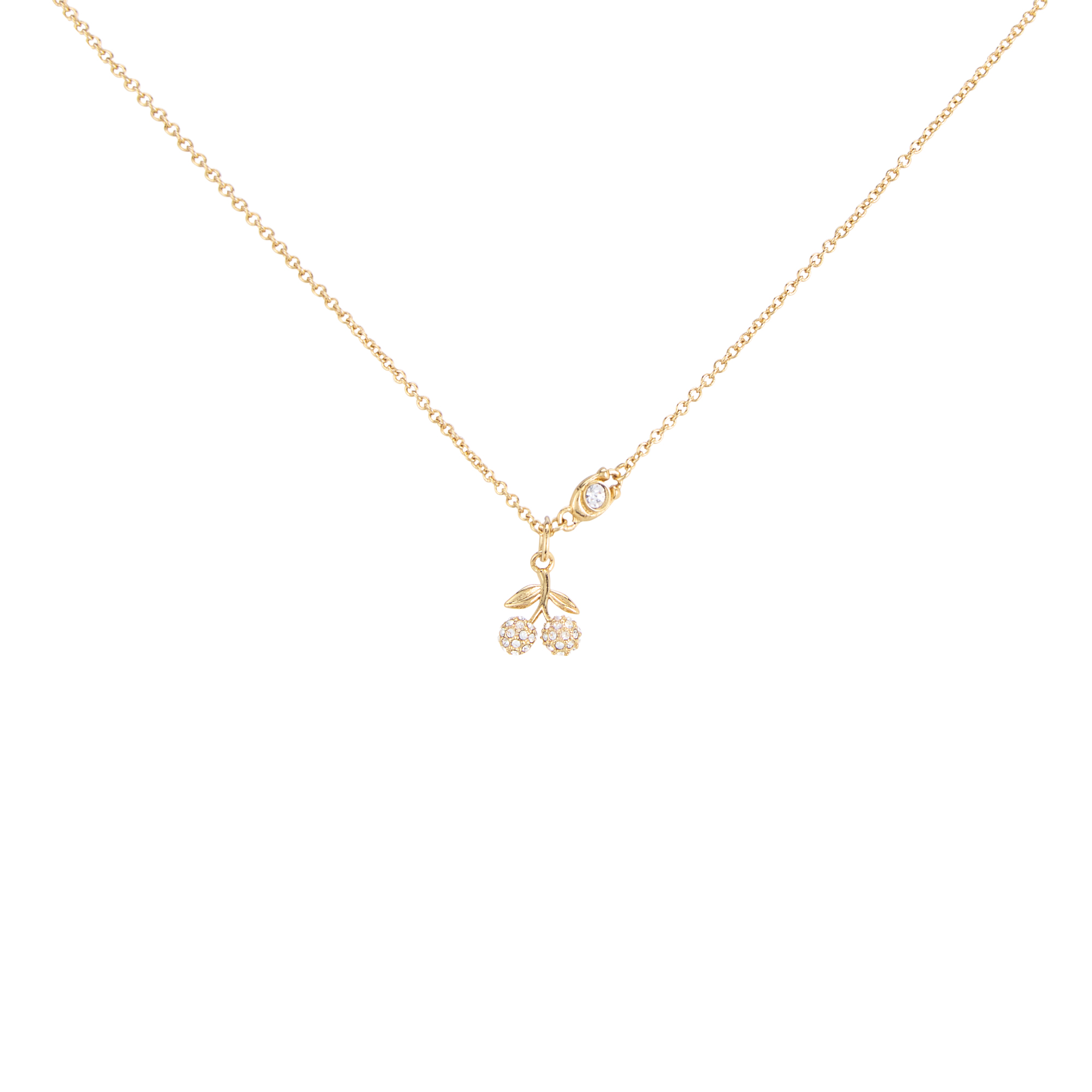 - Adjustable length, cherry pendant with pavé detailing, C logo detail with rhinestone embellishment, polished gold-tone finishes