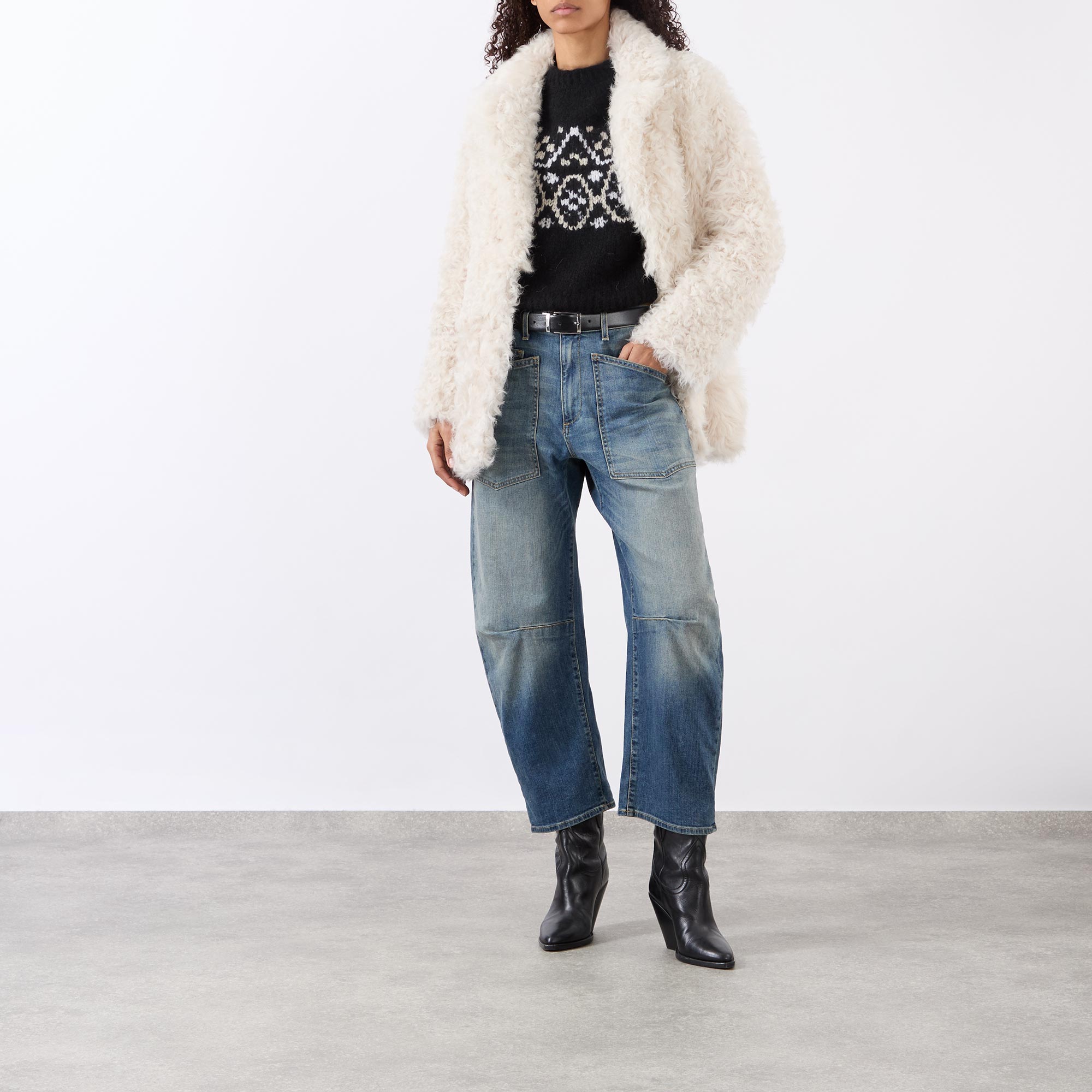 Nili Lotan's SS26 collection leans on timeless staples crafted from premium fabrics, think denim, leather and suede. The Josie coat, for example, is cut from pure leather and features a natural curl variation for a textured finish. Framed by a notch lapel collar, the oversized design boasts side entry pockets to store your absolute essentials, and sits below the hip for a snug edit.