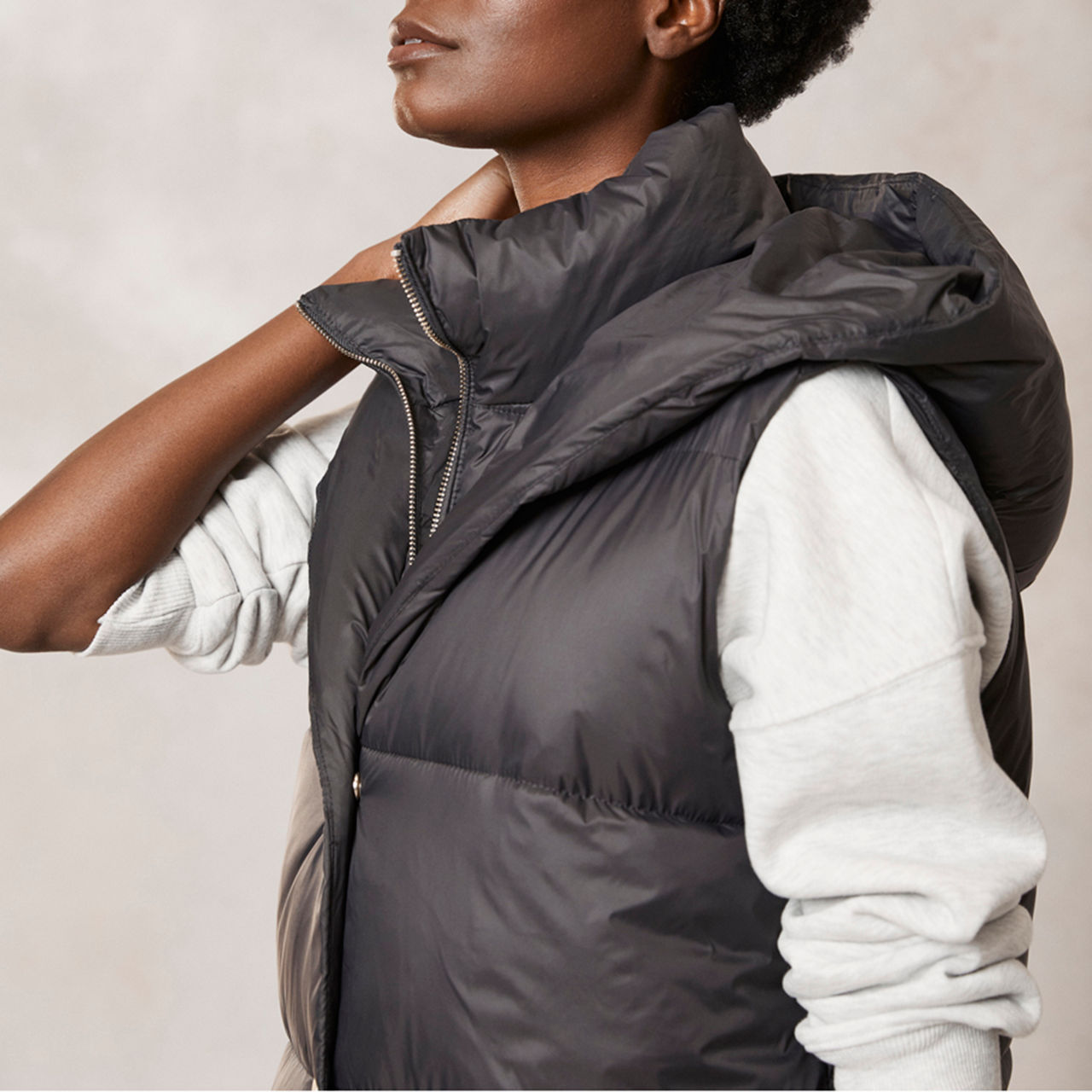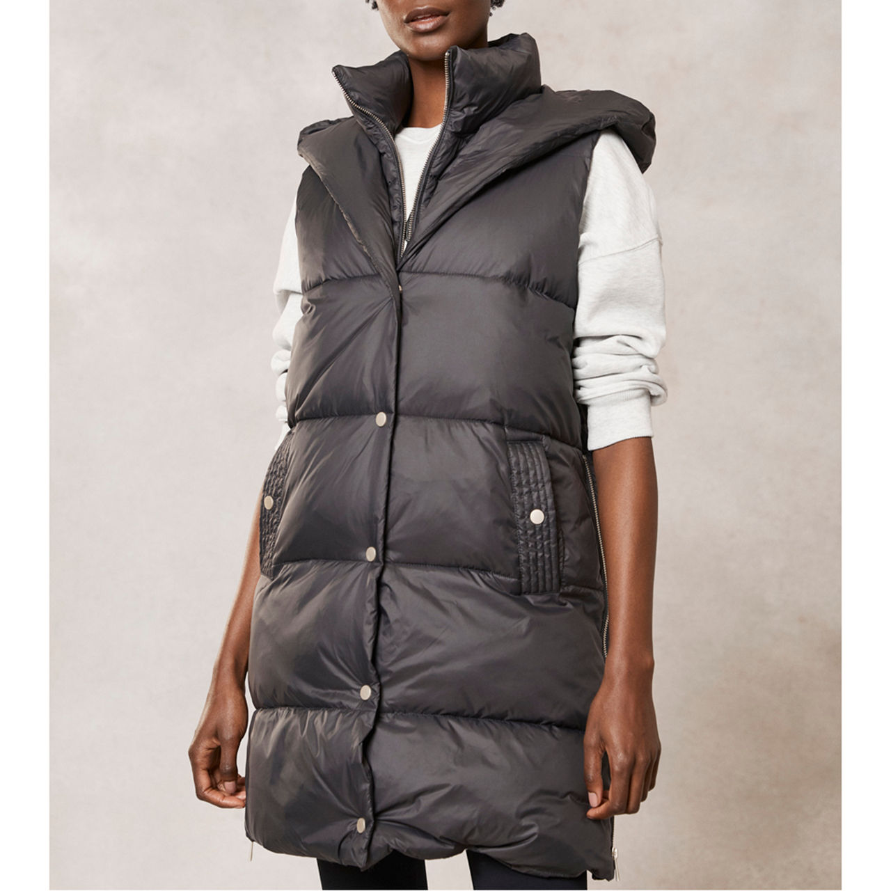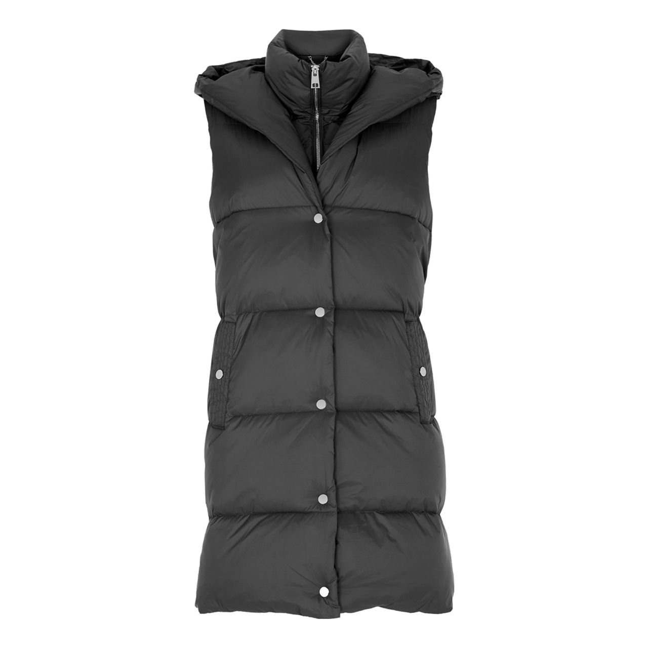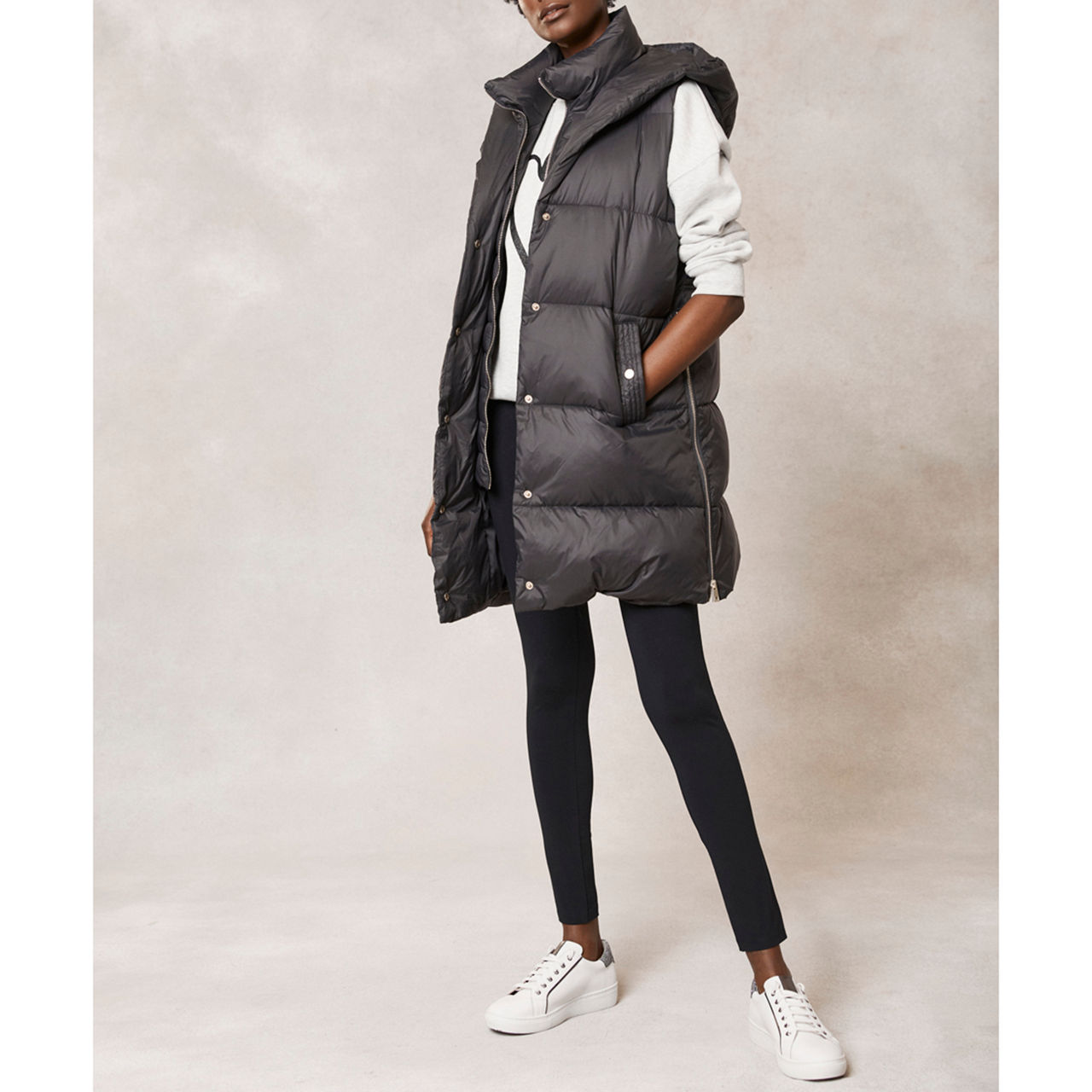 Designed with a high-necked zipped inner insert for a layered look, this grey gilet is quilted in a thick striped pattern for added warmth. Finished with a generous hood, zipped sides and a partially cinched waist for a flattering silhouette, wear yours over jeans and a sweatshirt during the colder months for an effortless look.
