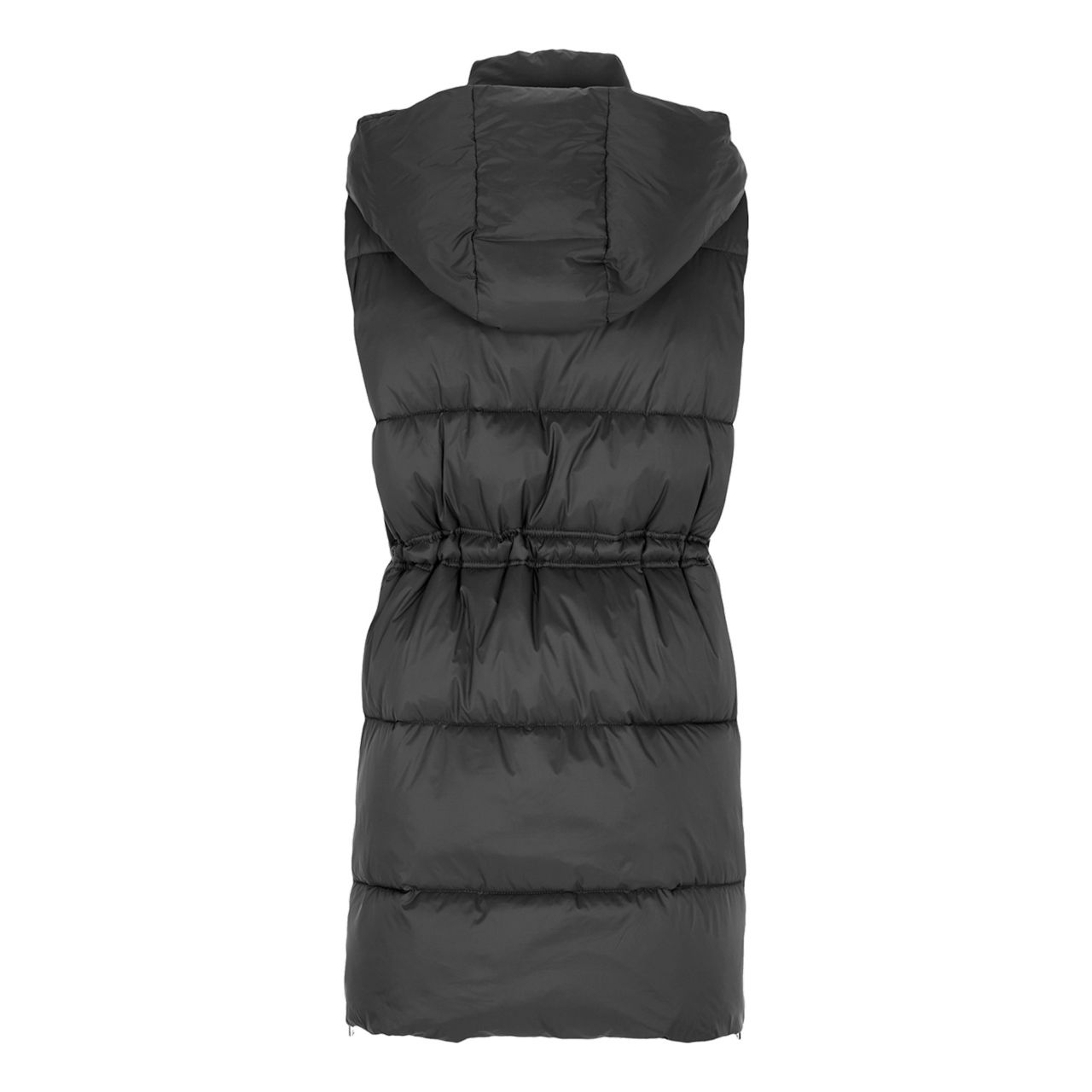 • Sleeveless, mid length, zip and snap button fastening, high neck, padded, quilted, pockets.