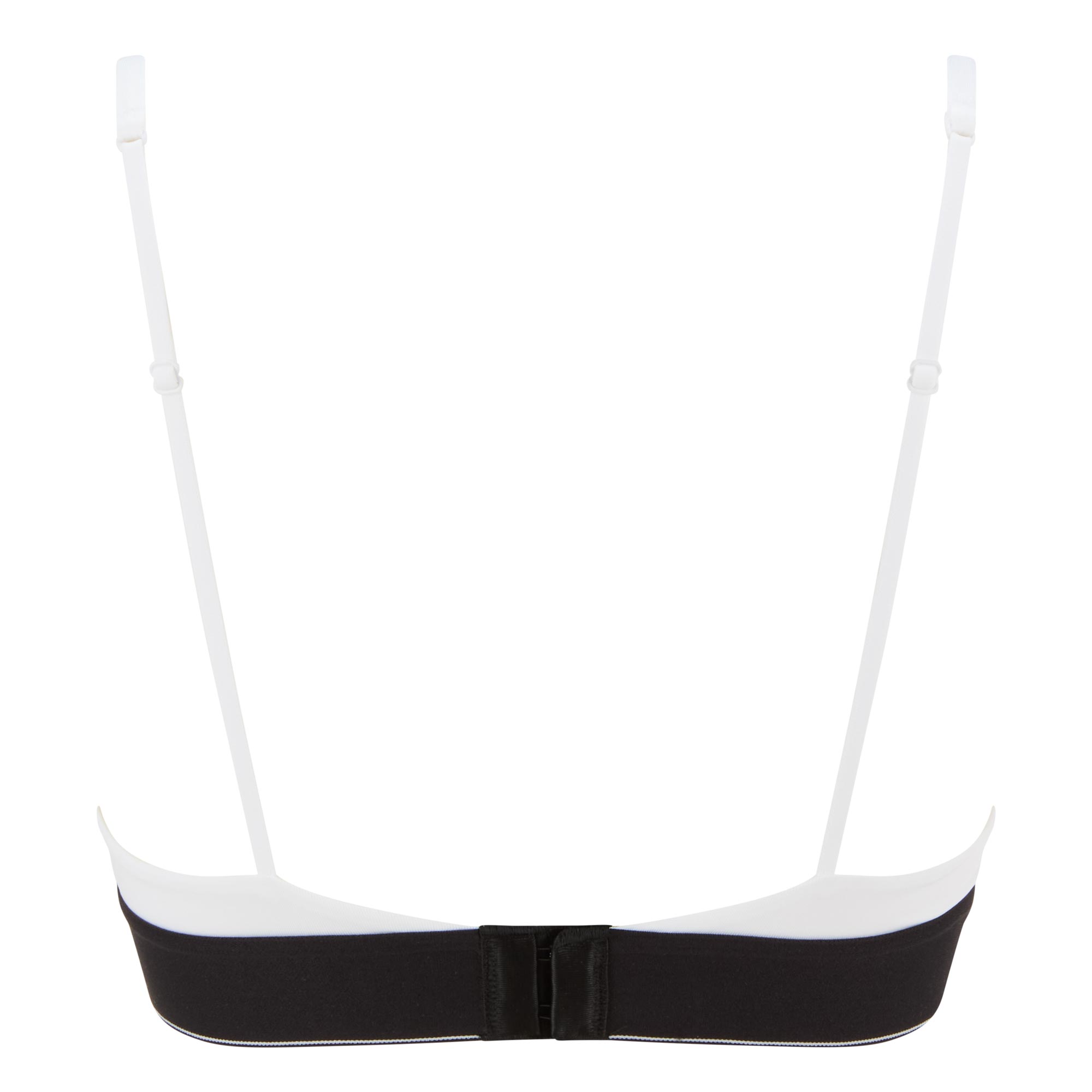 - Triangular cups, adjustable straps, hook and eye fastening, adjustable fit, elasticated underband, monogram logo print, removable padding, lightly lined and moulded cups