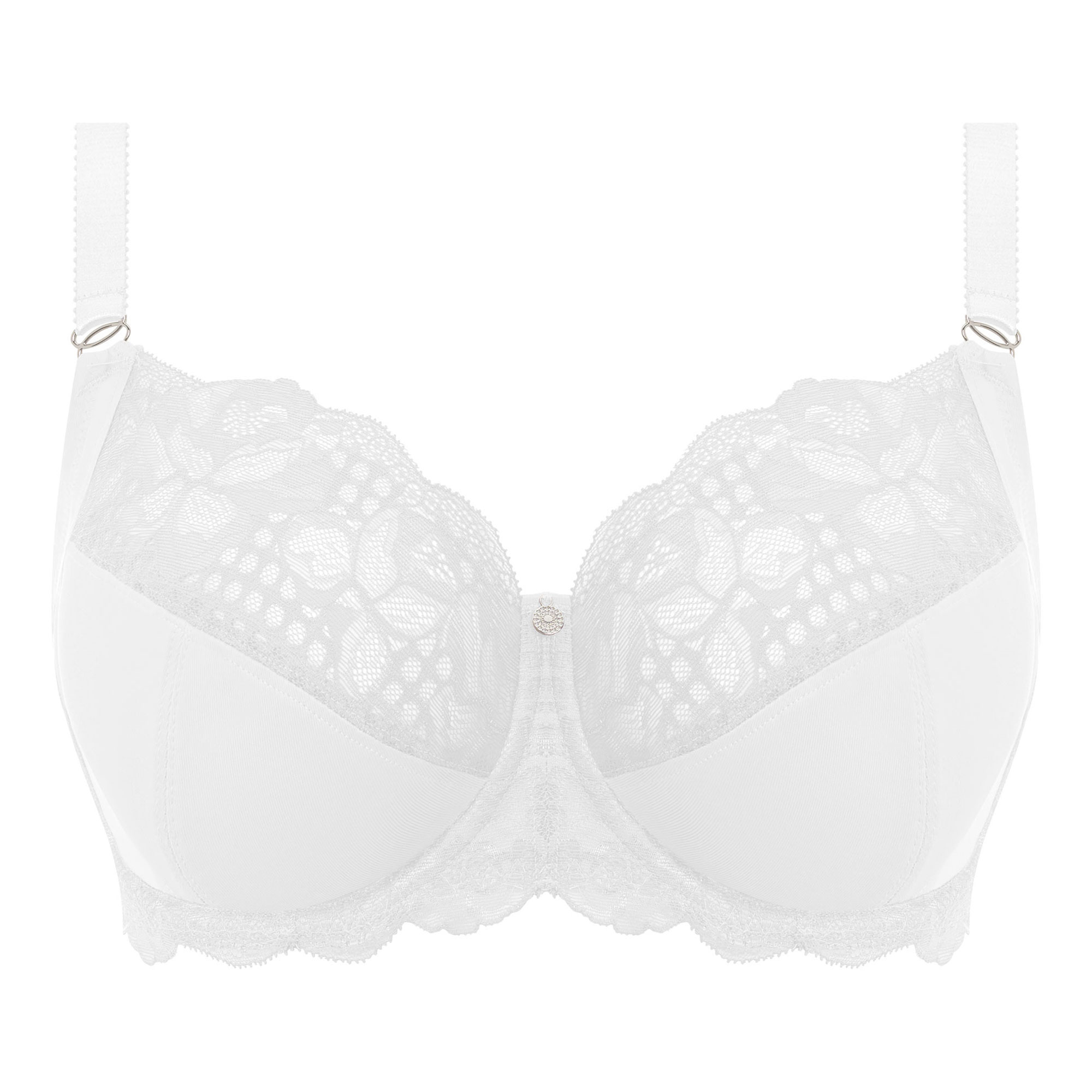 • Soft touch fabric and stretch lace, three piece cup with side support, wide wired for comfort, lace back wing with powernet, powerful stretch lace top cup, tow back prevents strap slippage, adjustable shoulder straps, metal ring apex and charm detail, multiple hook fastening options