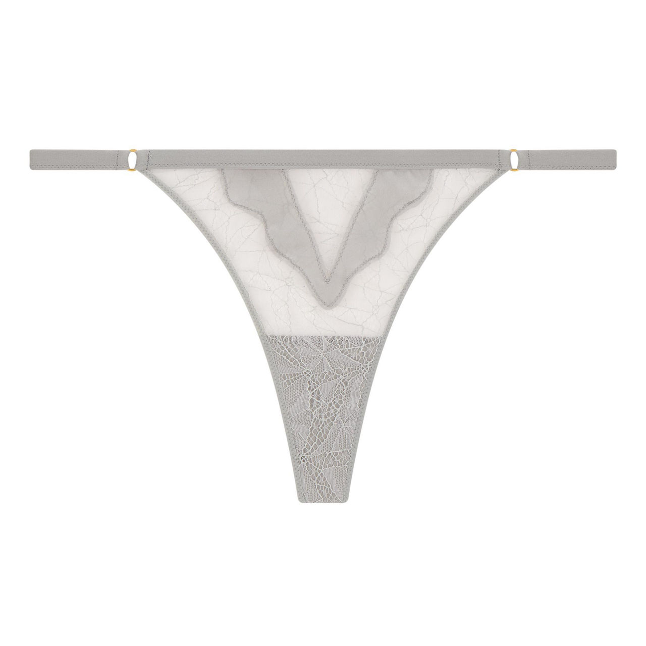 - Elasticated, lace design, tonal stitching, lined gusset, thong style, smooth fabric