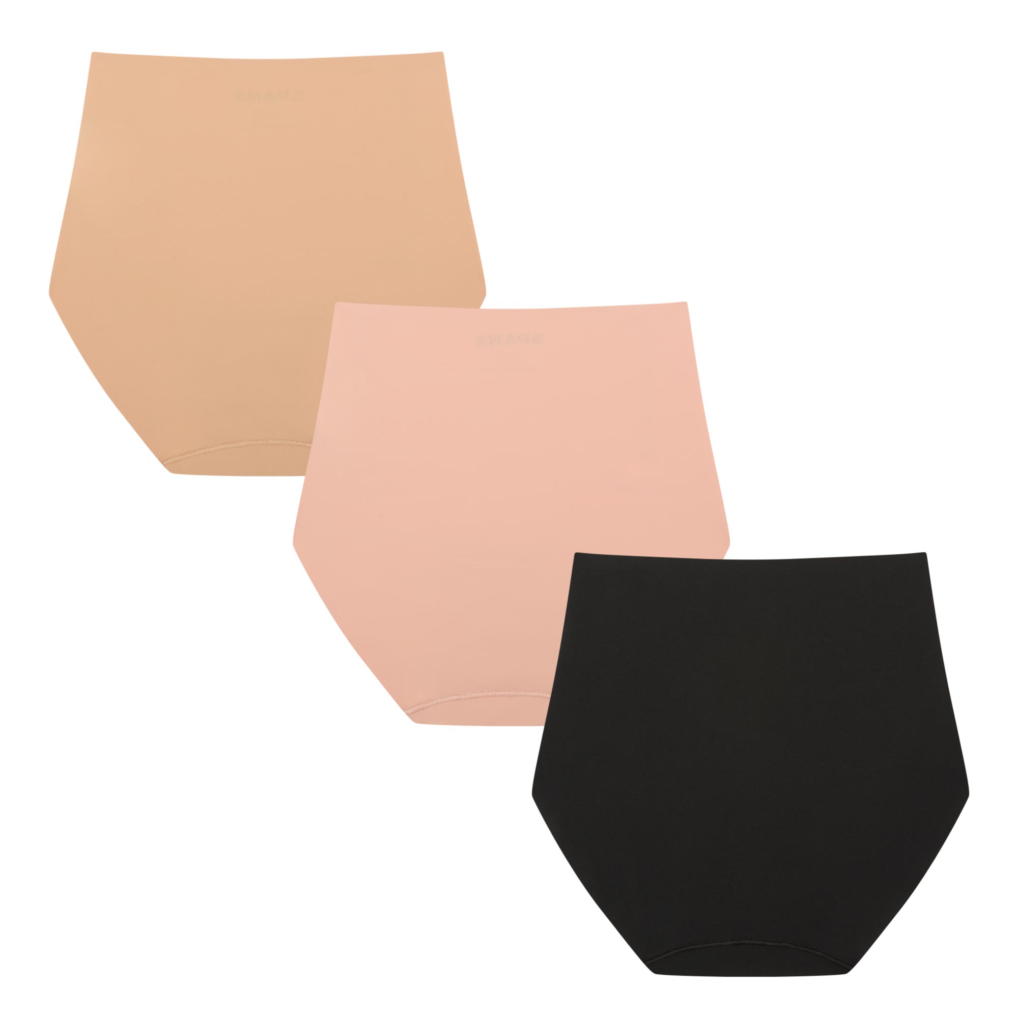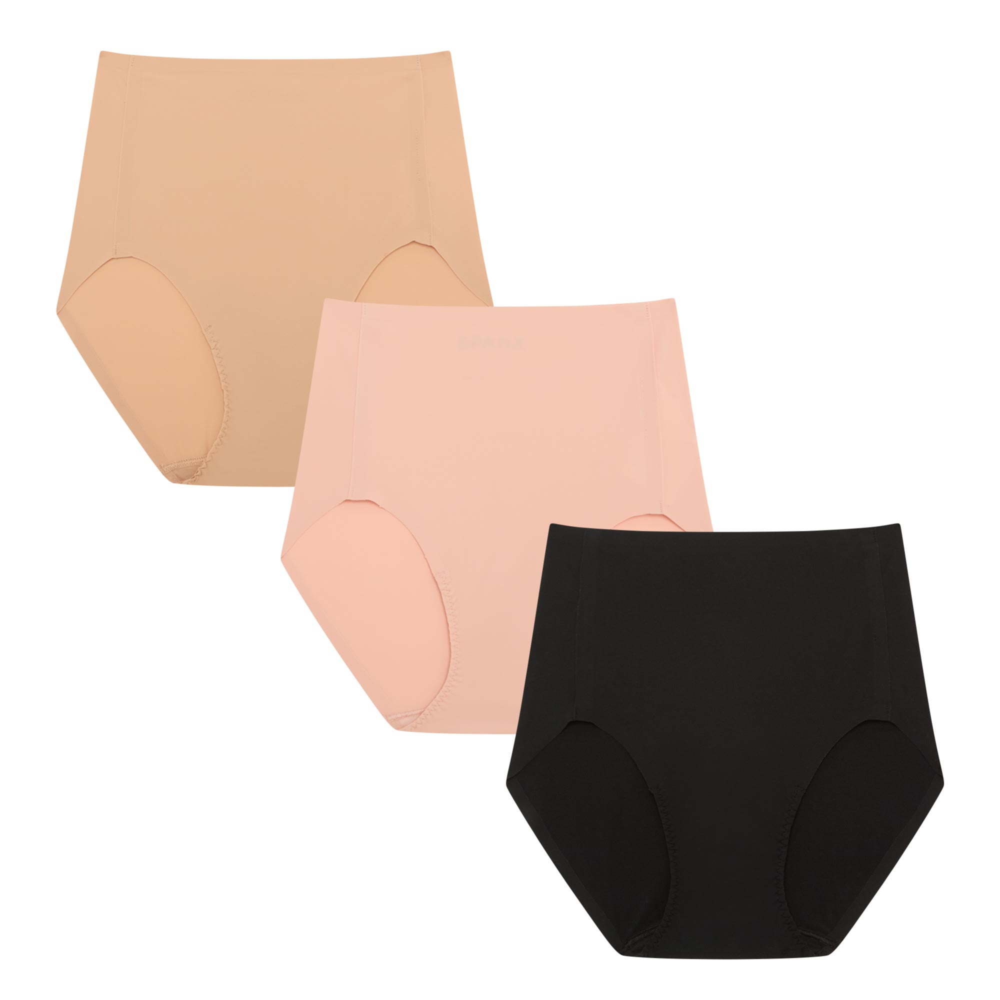 - Breathable, stretch-fused fabric, non-shaping, soft feel, elastic-free, no visible lines, quick-drying, cotton gusset, full coverage front and back, three-pack set