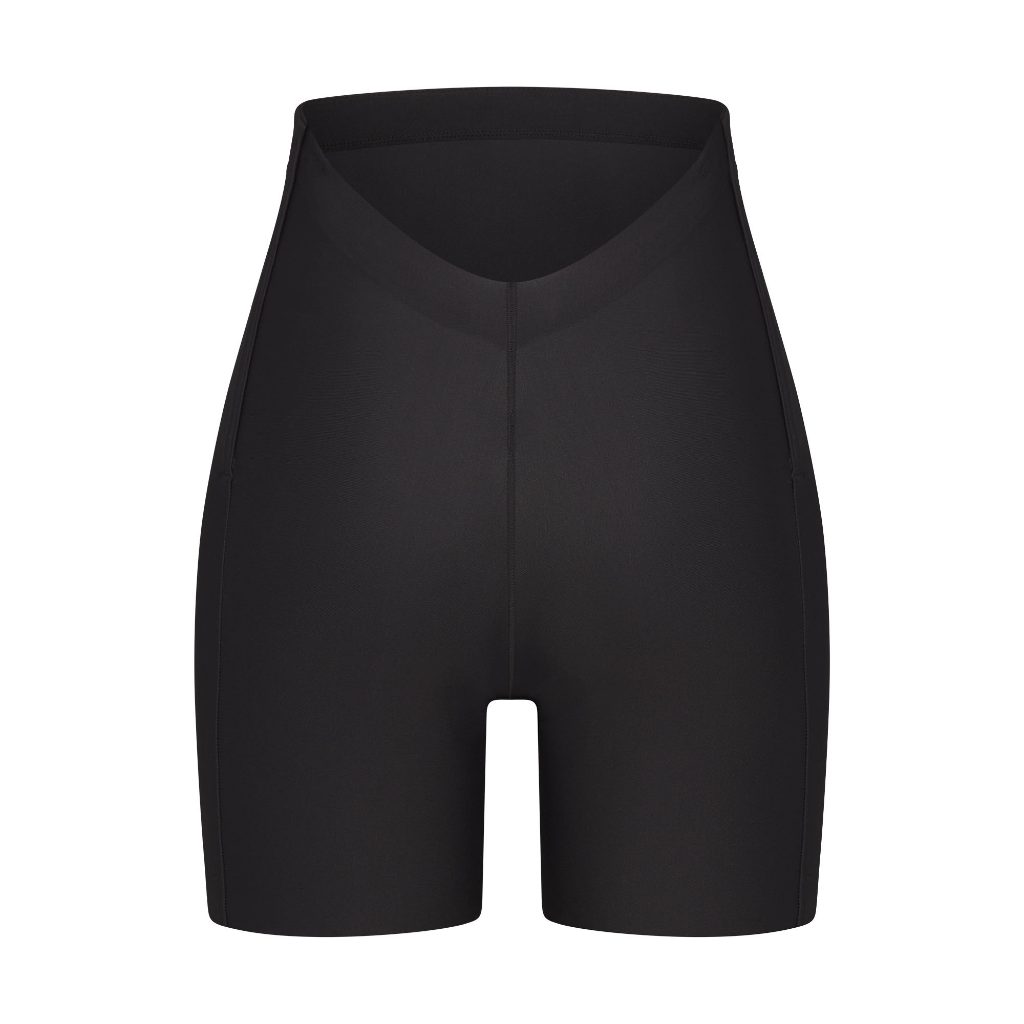 Perfect for wearing under low back and backless silhouettes. This mid-thigh short is designed in the signature SKIMS Body fabric with ultra-strong compression that snatches your core and smooths your thighs. Made to sit above the natural waist with a low back design. Features boning at the side seams to prevent rolling, a closed gusset, and removable, convertible straps for versatile styling.