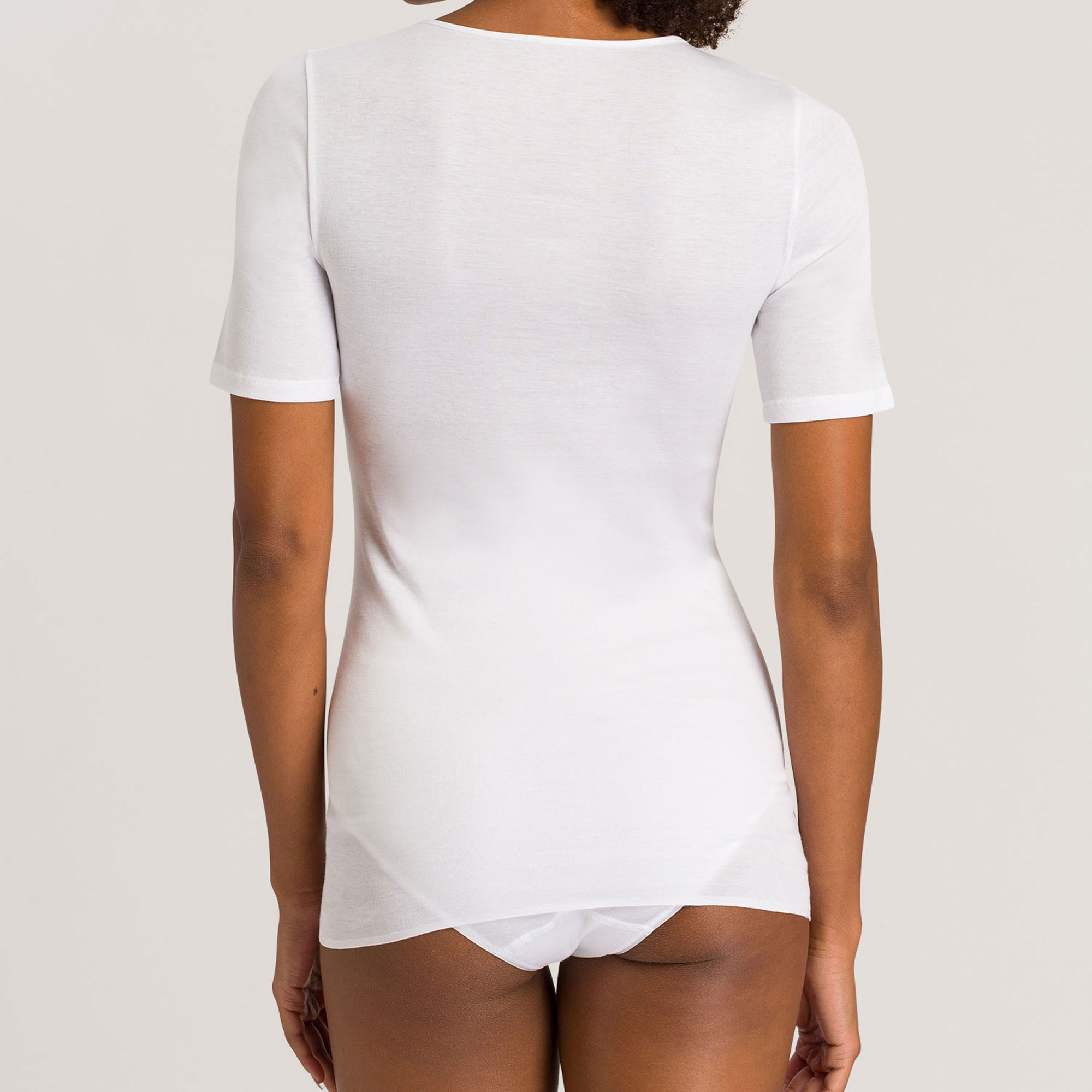 Spun from pure cotton, this short sleeve t-shirt by Hanro is ideal for layering under your outerwear or wearing to bed. A V-neckline flatters your figure, while the seamless construction creates an unbroken silhouette when worn under tight garments. The soft hand feel offers incredible everyday comfort from day to night.