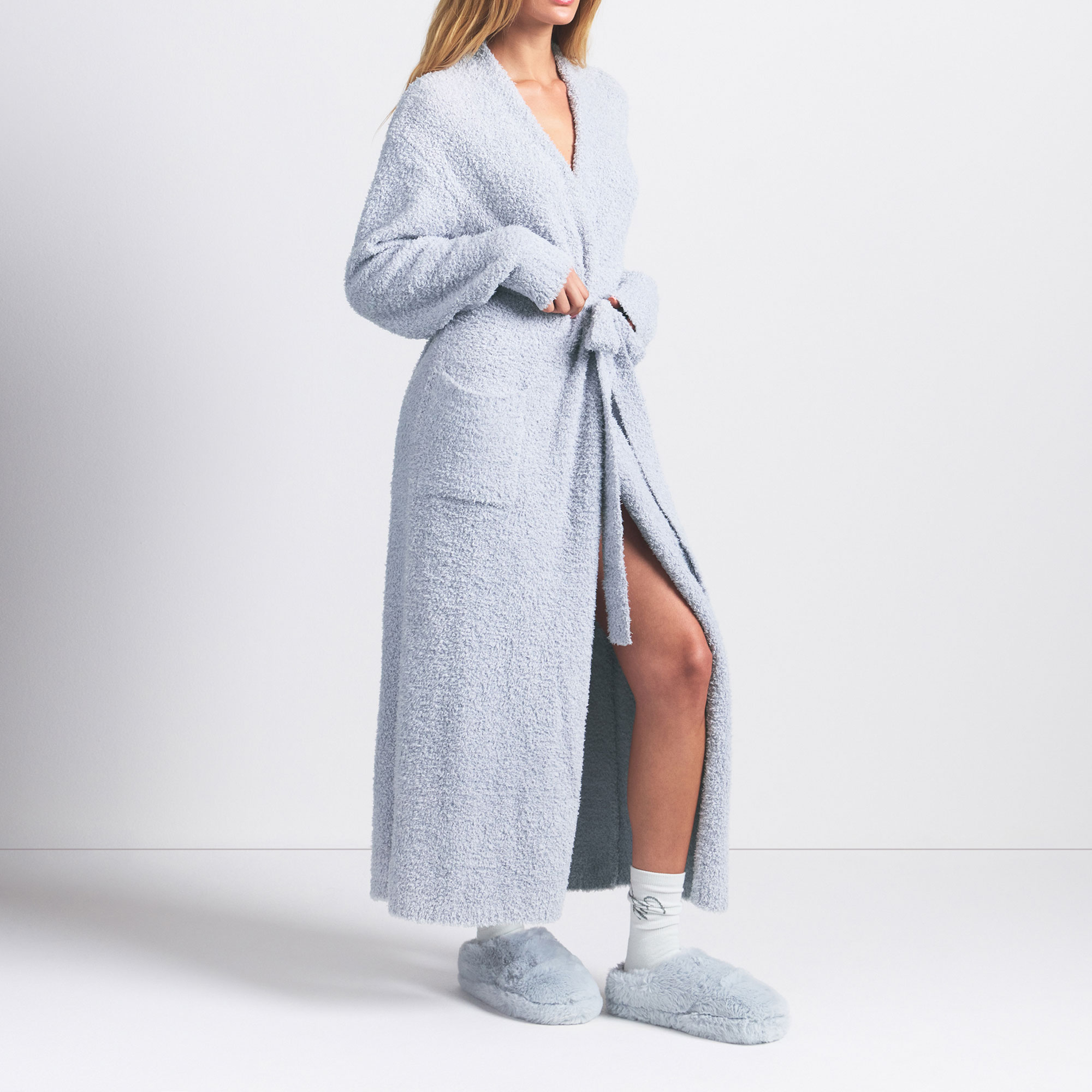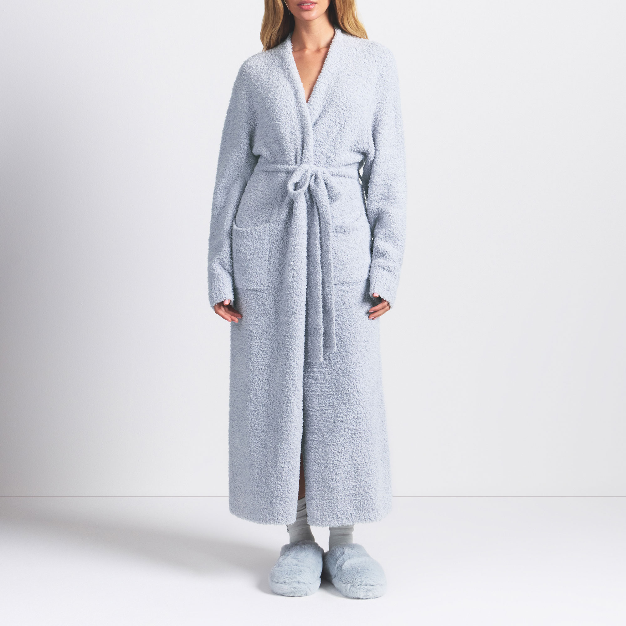 This robe from SKIMS is the softest style you and yours will wear all season long. Features a comfortable, relaxed fit, removable belt, and side patch pockets.