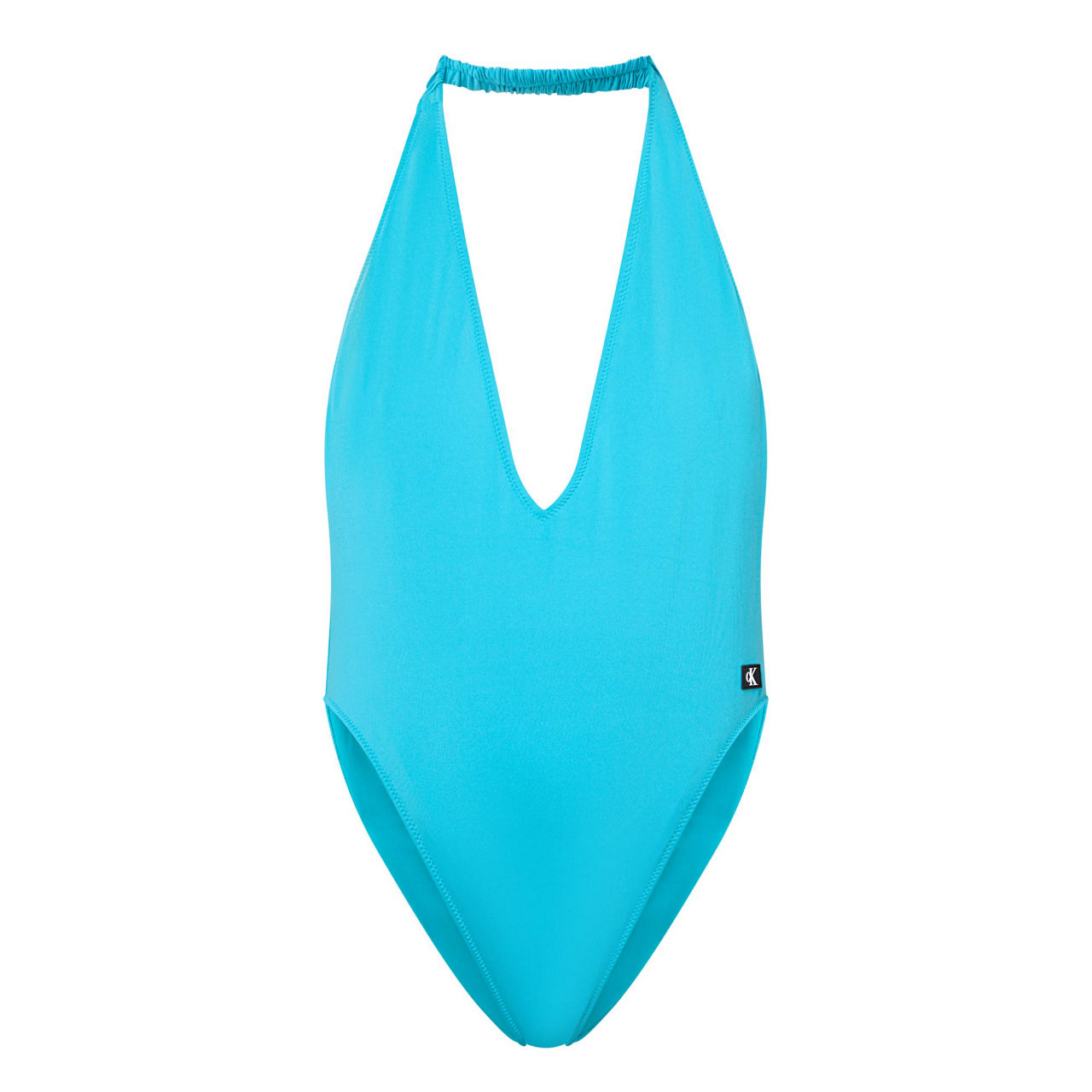 - Elasticated halterneck, plunge neckline, backless, high-cut leg, monogram patch, smooth seamless finish