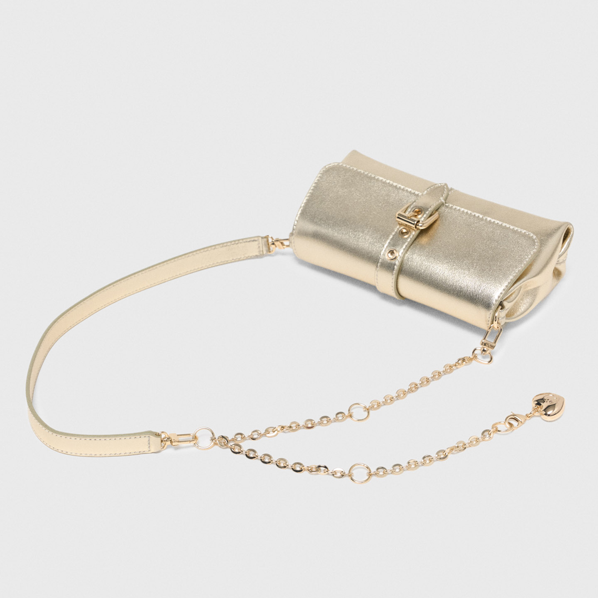 - Composition and Care: Main: cow leather. Lining: 100% polyester. Chain: 100% brass. Specialist leather cleaning