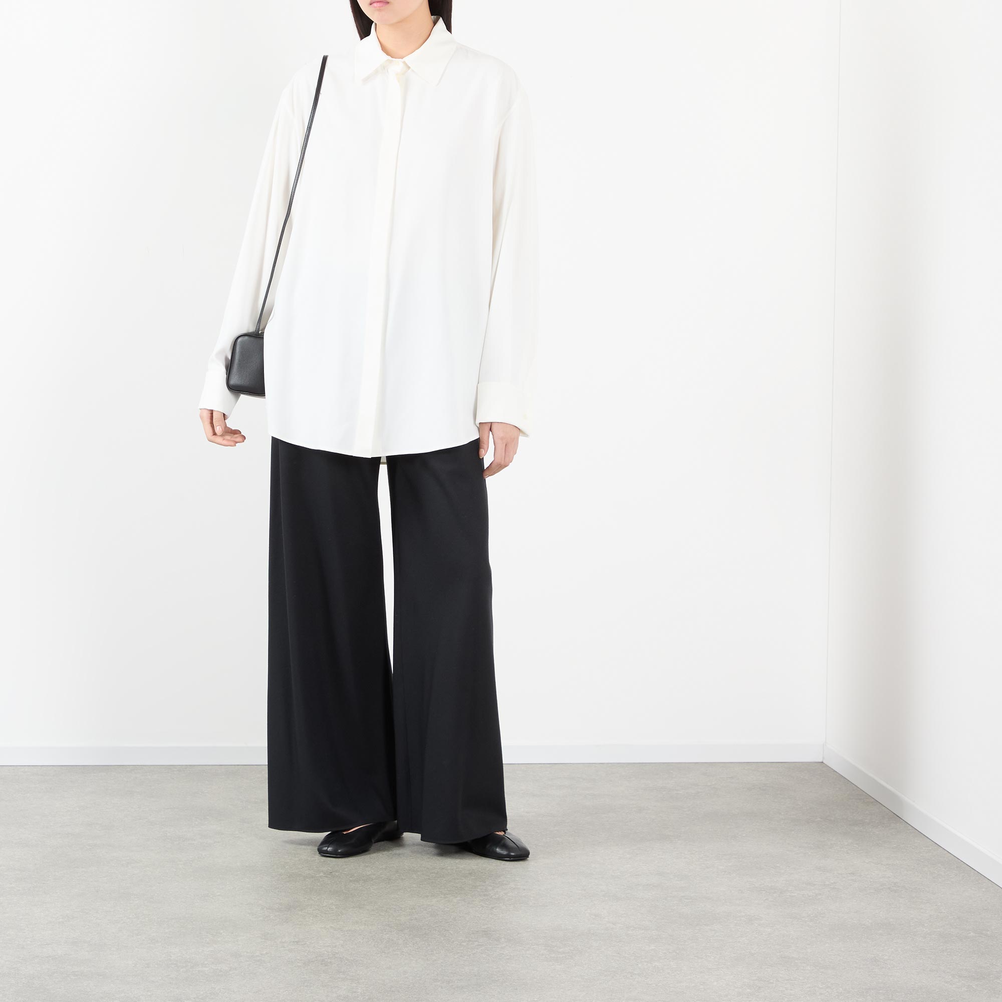 Continuing its minimalist approach, The Row’s SS26 collection celebrates architectural draping and expert craftsmanship, perfectly showcased in the Penrose shirt. Whipped up from pure silk for a luxurious touch, it's framed by a classic point collar with long sleeves and slouchy dropped shoulders and features a concealed button placket for a polished edge, while elegantly draping for a relaxed aesthetic. Style out over wide-leg trousers for your next office attire.