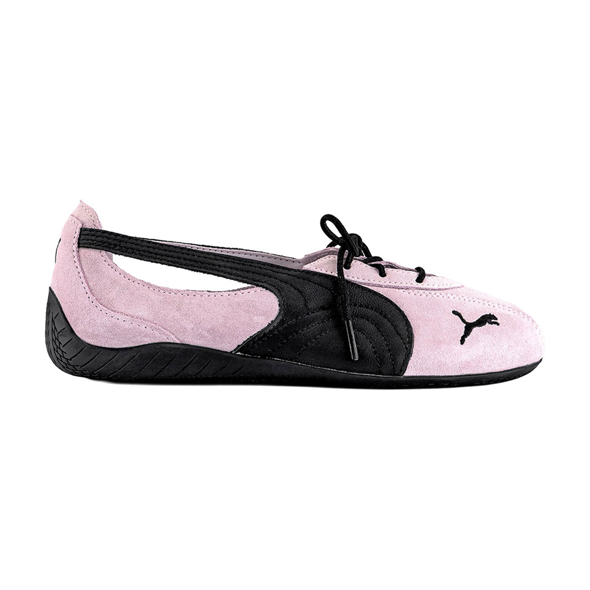 Step into a new era of athleisure elegance with the Puma Ballet Nova blending the grace of a ballet slipper with the bold attitude of a streetwear icon. Crafted in suede with contrast leather detailing, the Ballet Nova delivers a sleek silhouette that still feels unmistakably sporty. The lace‑up design and cut‑out side panels channel ballet-inspired aesthetics, while the signature Puma Formstrip wraps the upper for an instantly recognisable finish.