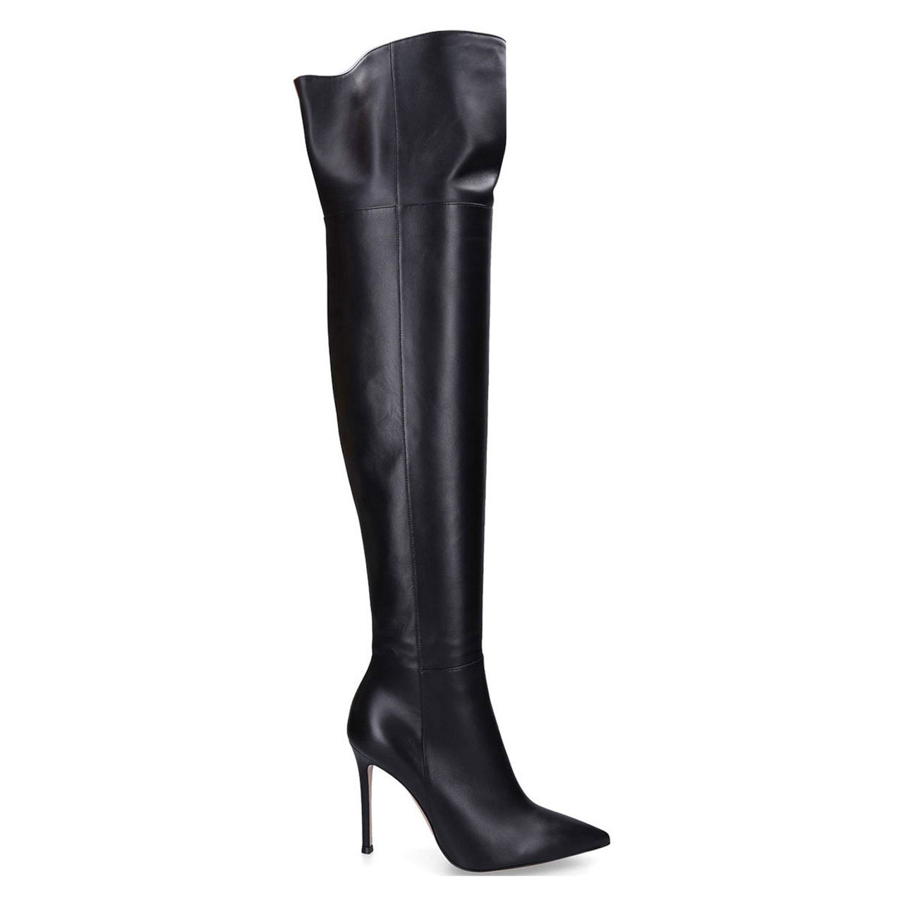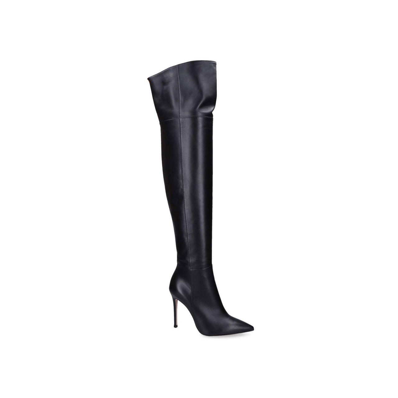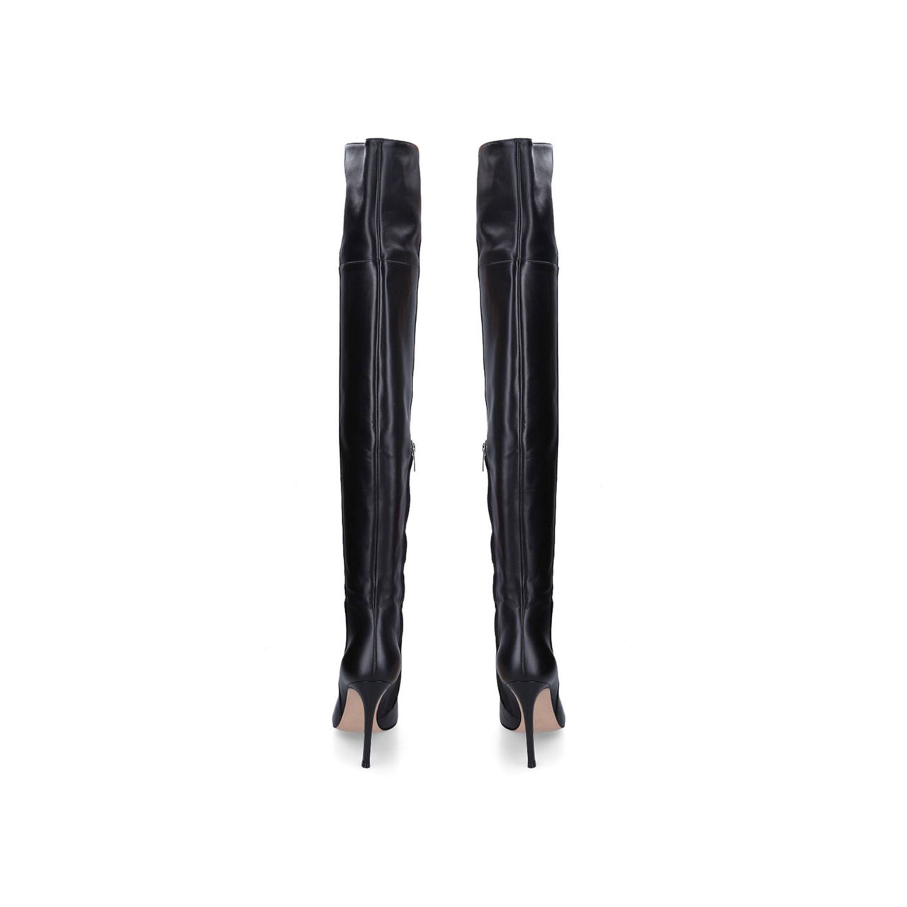 - Over the knee, stiletto heel, pointed toe, zip fastening, pull on style.
