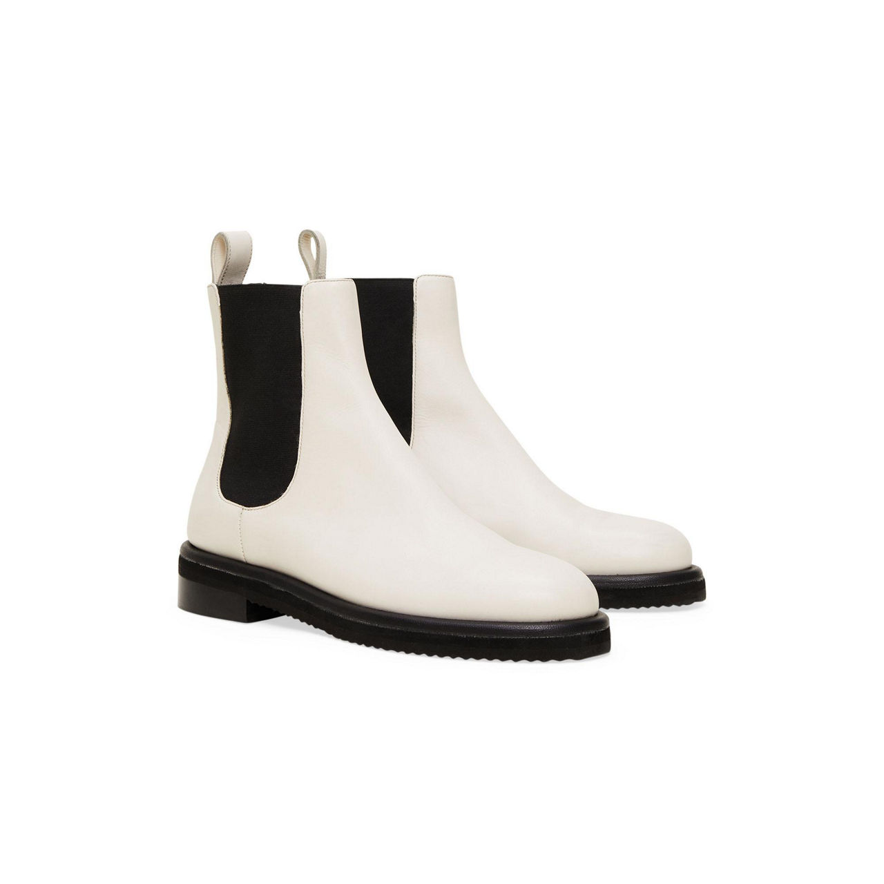 The perfect do-it-all boots that will go with all your new season outfits. Crafted from 100% leather, Phase Eight's cream ankle boots feature elasticated detailing for easy pull-on comfort. They’re finished with a chunky contrast black sole.
