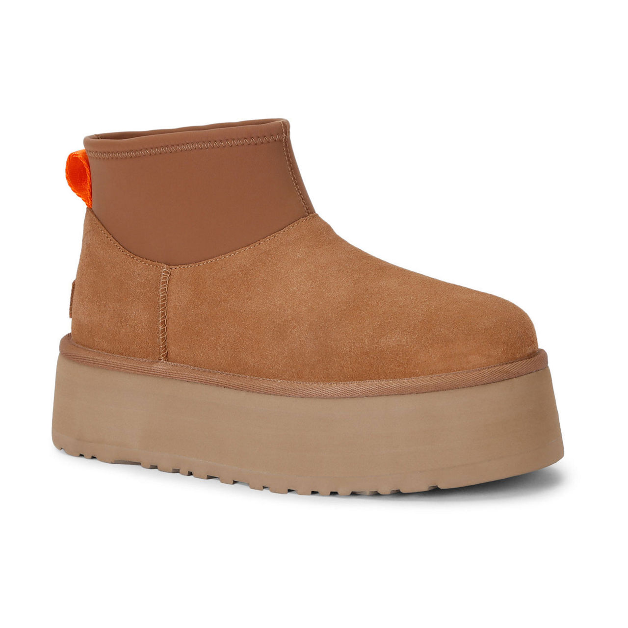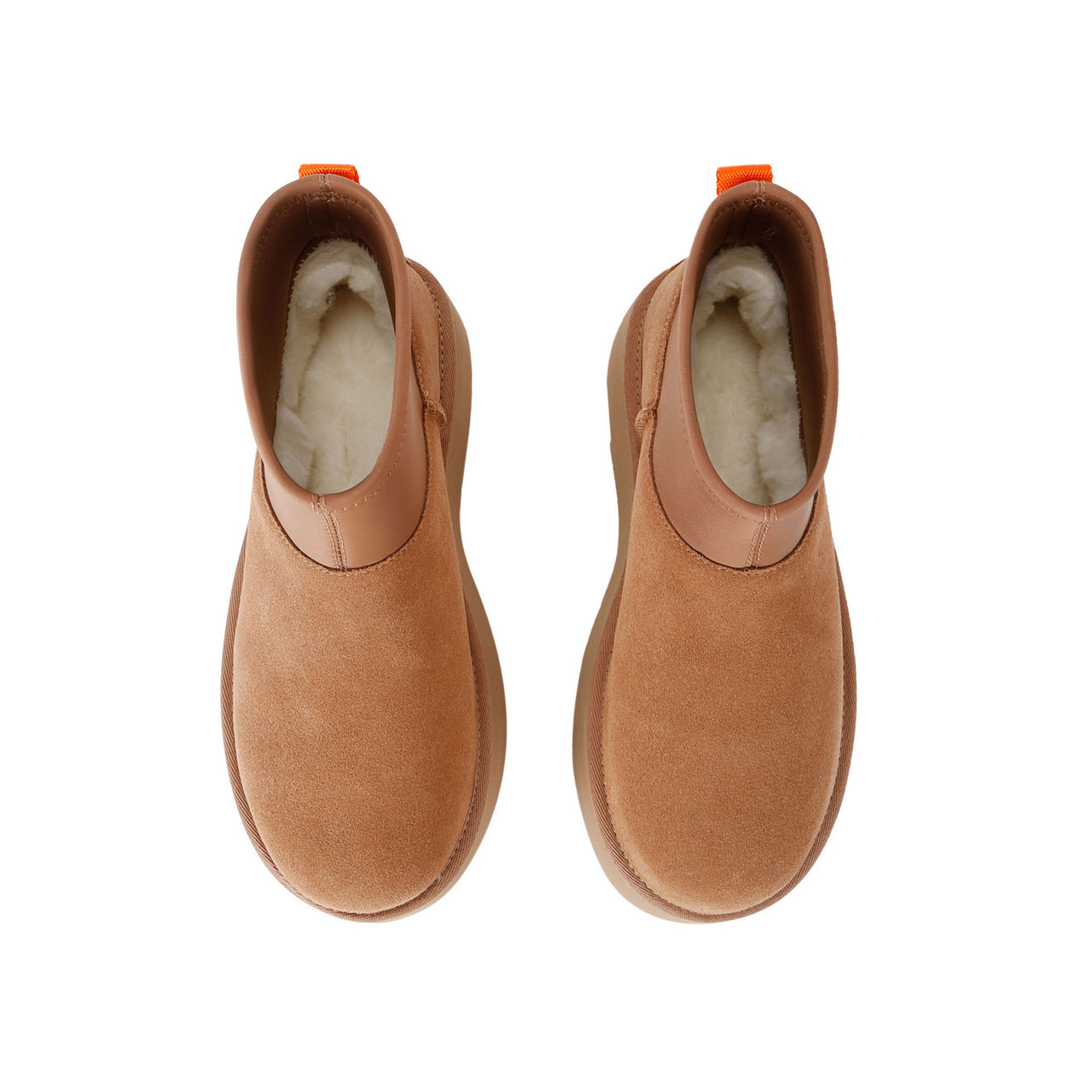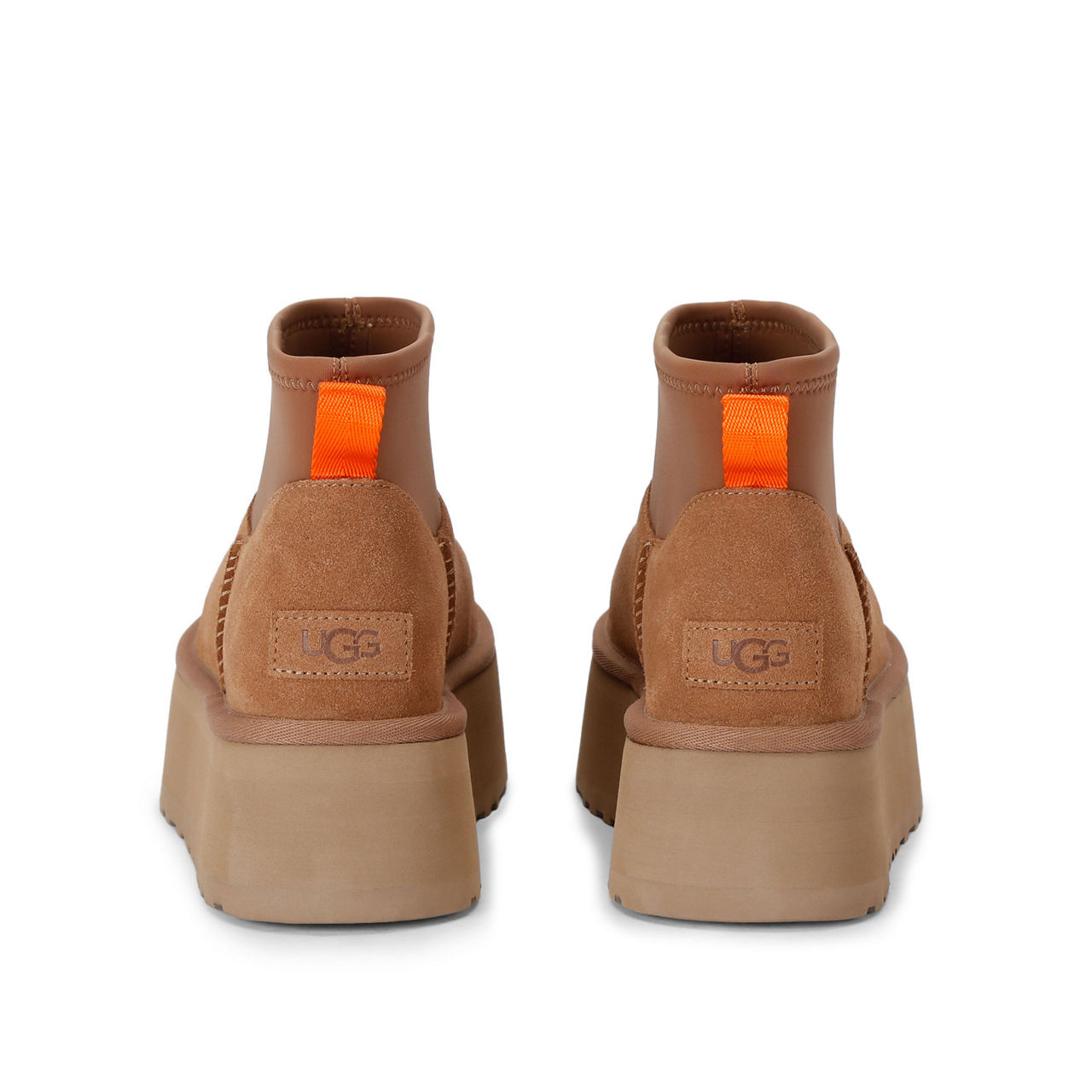 - Neoprene shaft, UGGplush™ lining, round toe, heel pull tab, platform sole, sugarcane EVA outsole, heat-embossed logo, suede finish
