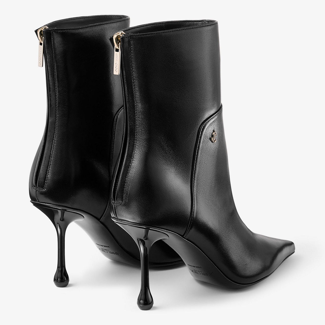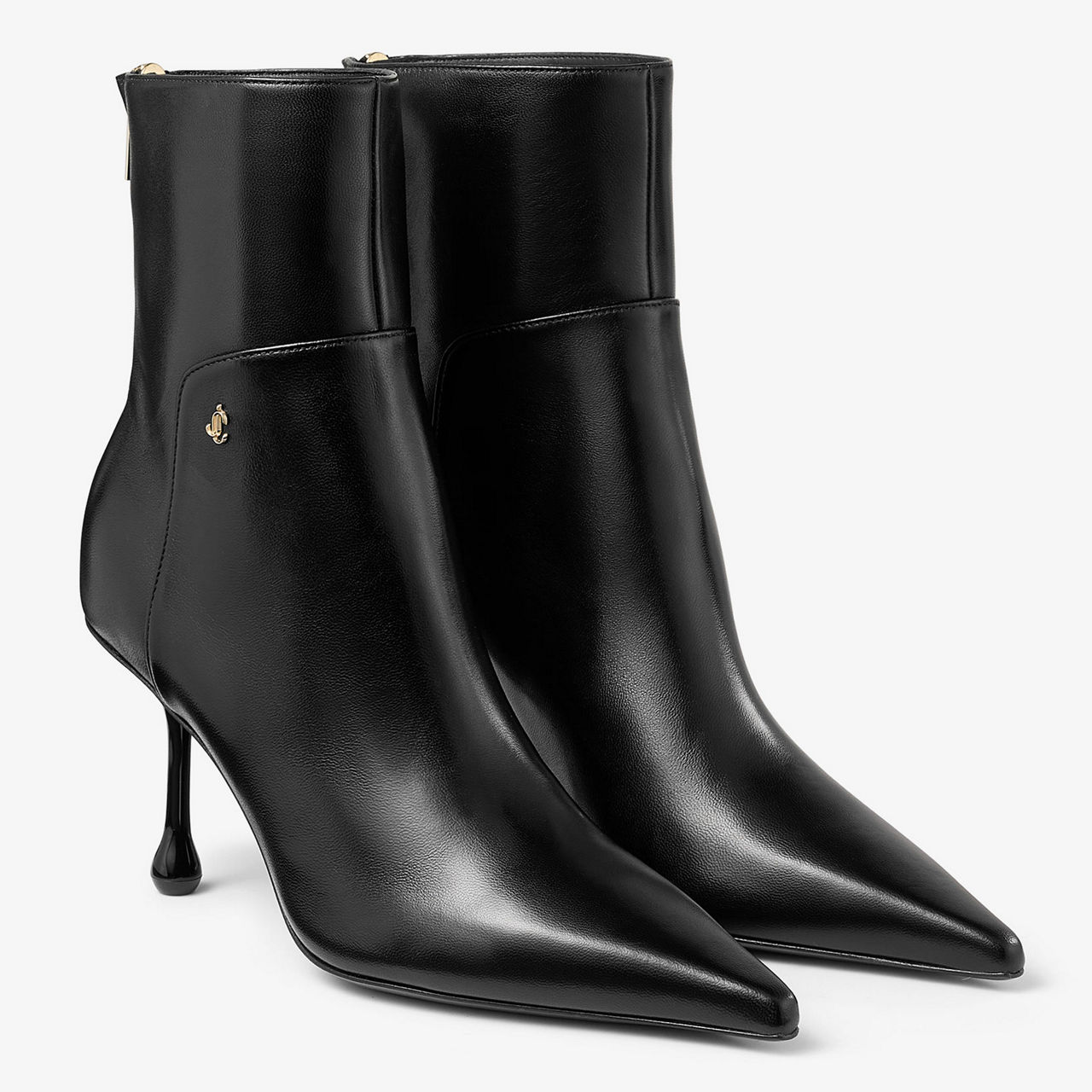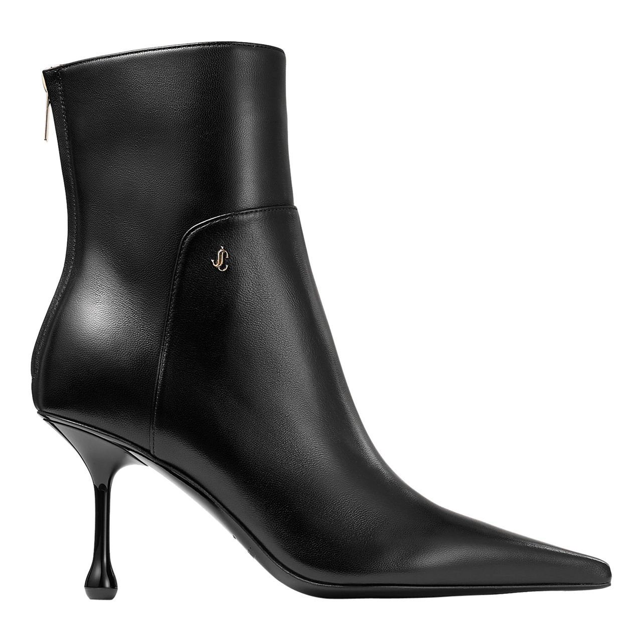- Smooth finish, pointed toe, JC brand emblem stud, heel zip fastening, gold-tone hardware, branded zip tabs, drop stiletto heel