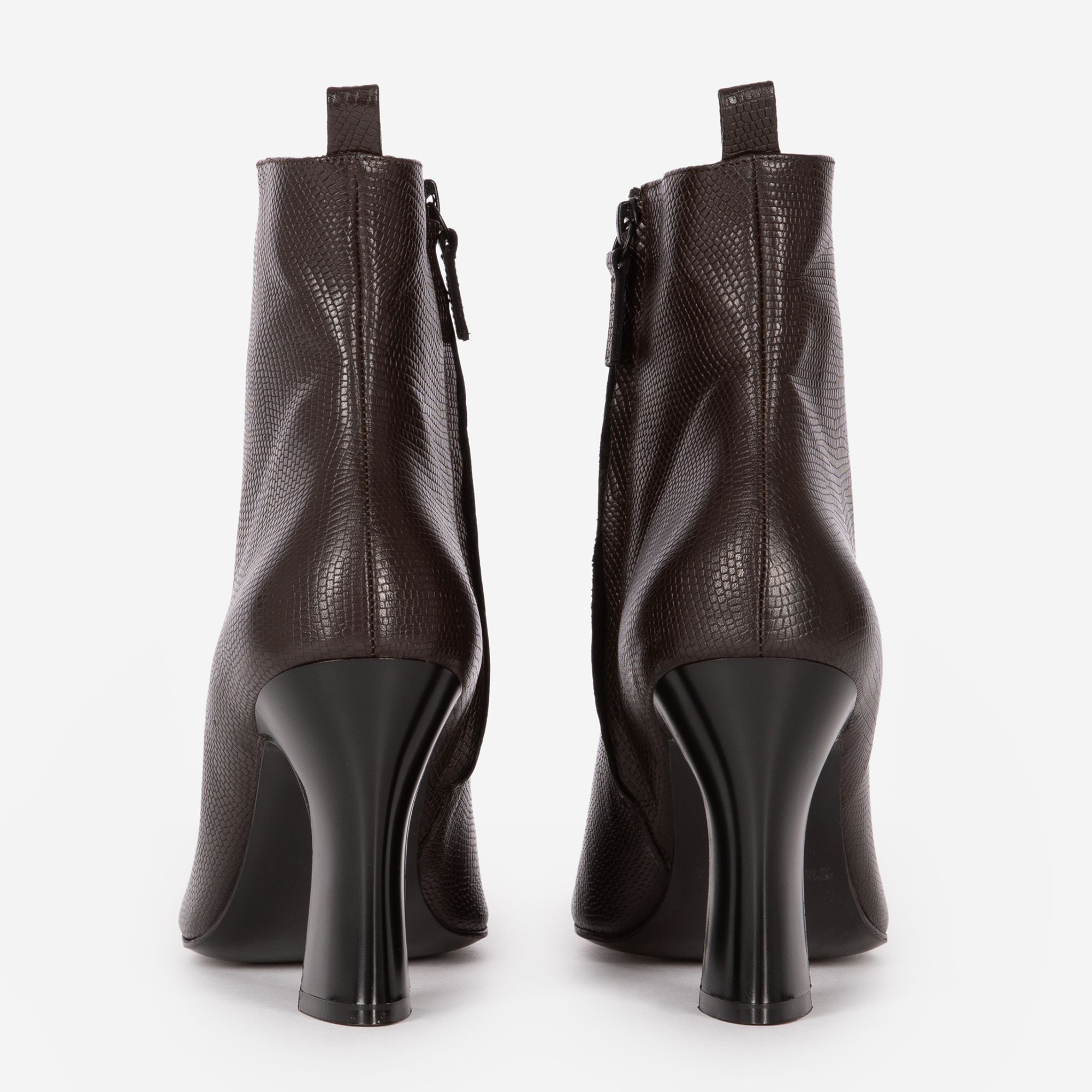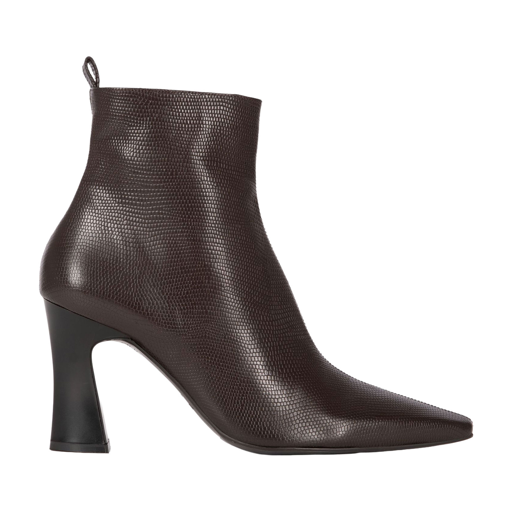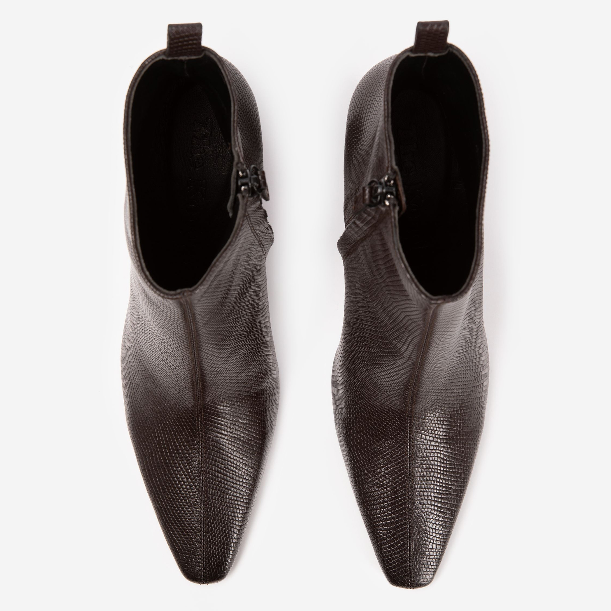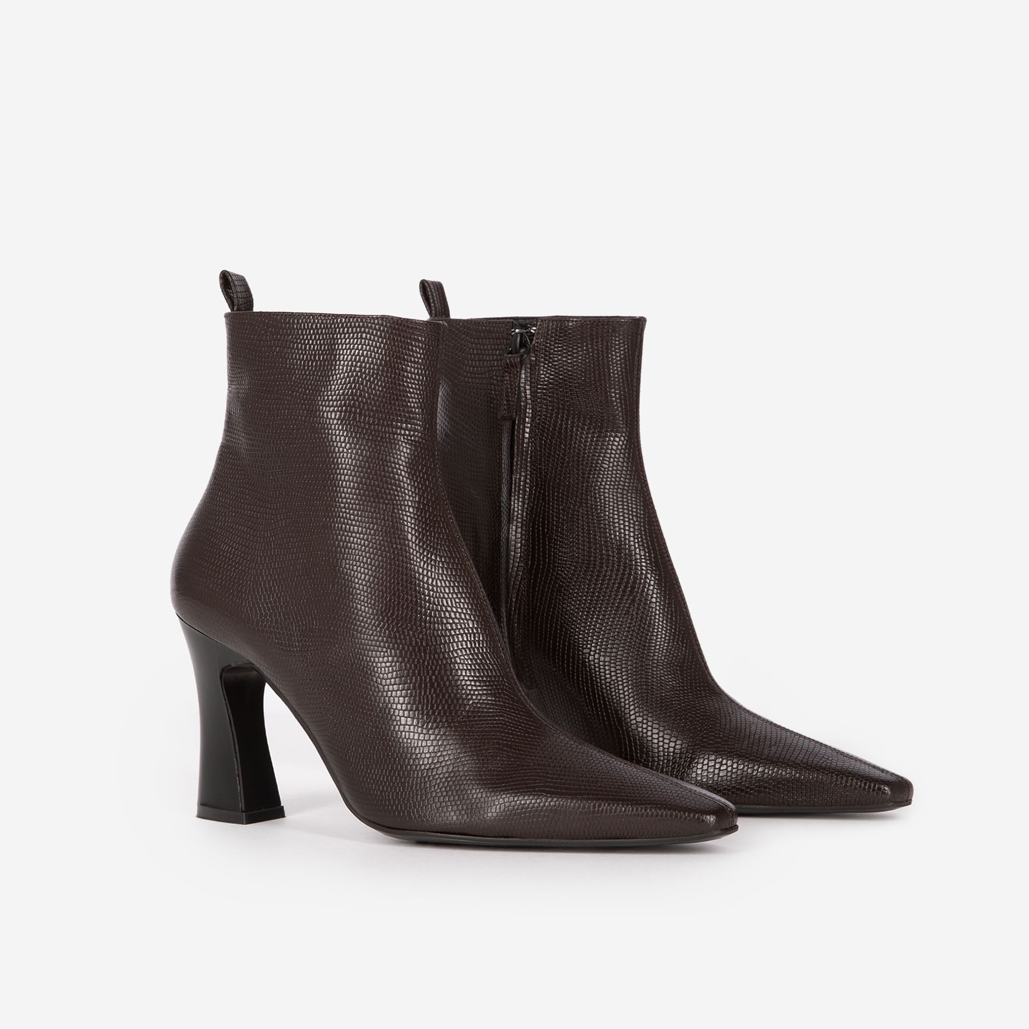 - Pointed toe, side zip fastening, lizard-effect, textured leather finish