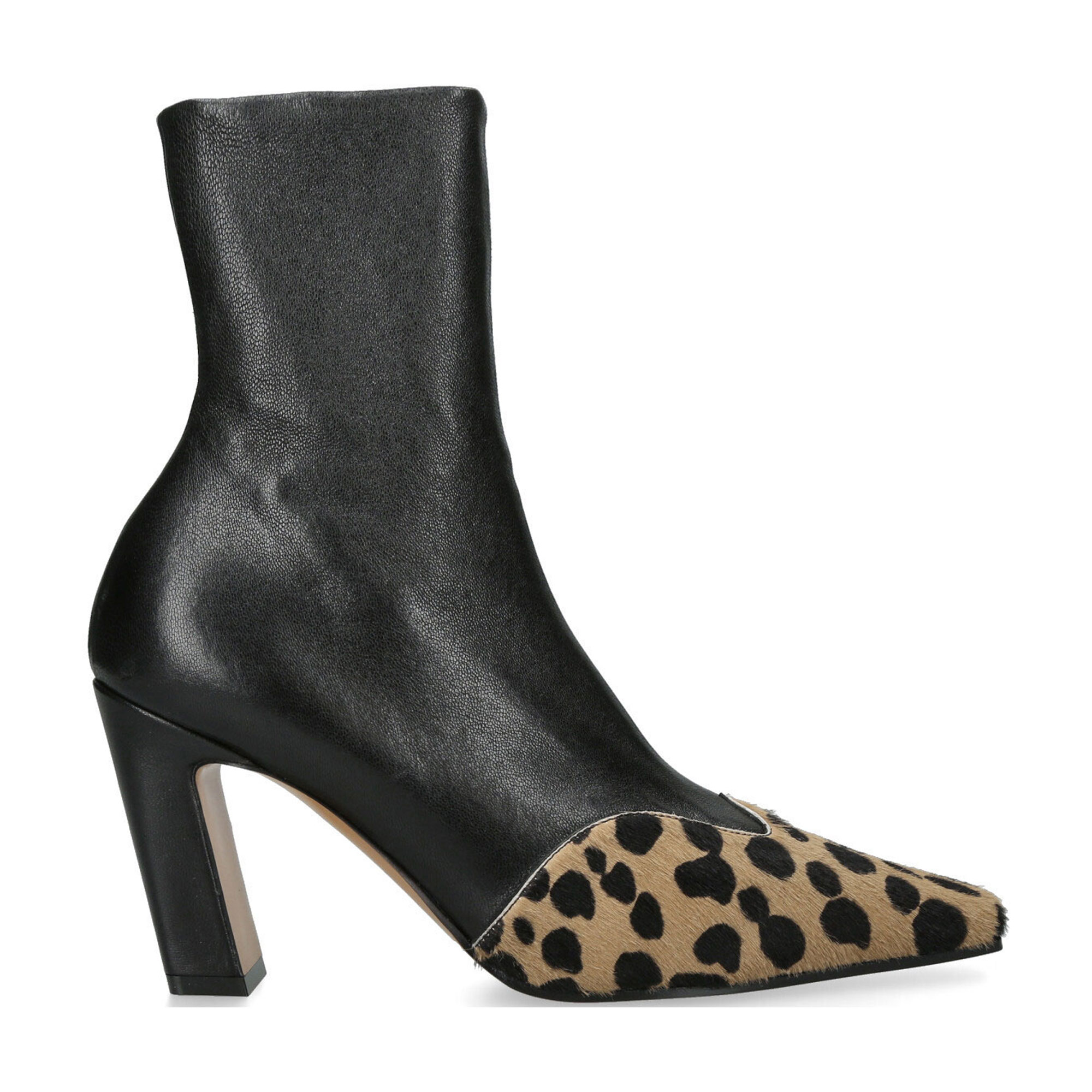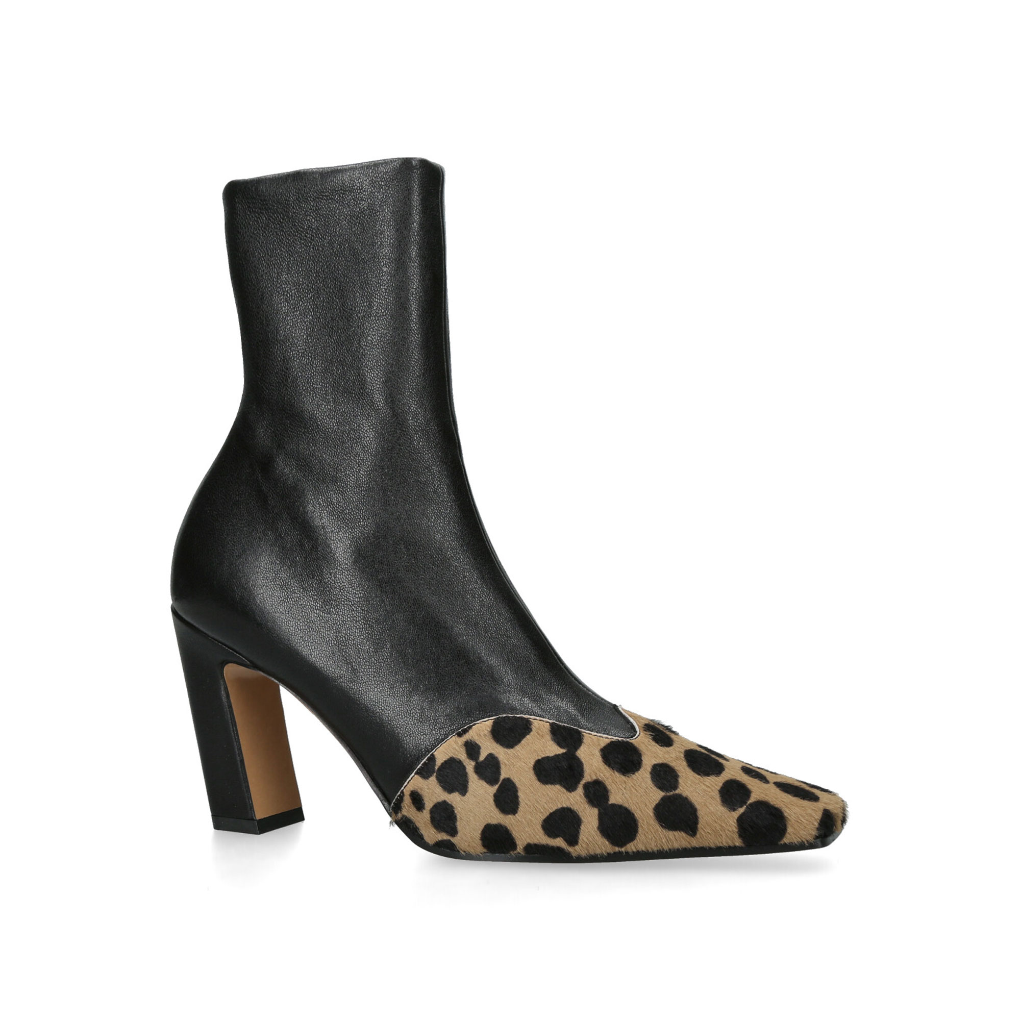 The Dallas ankle boots from Khaite are an elevated take on classic cowboy styles. They’re crafted in grained black leather and capped with a curved leopard-print panel at the square toes, while finished with a structured block heel.