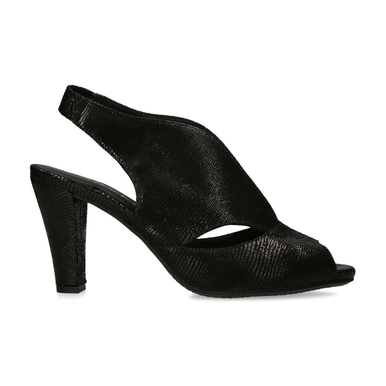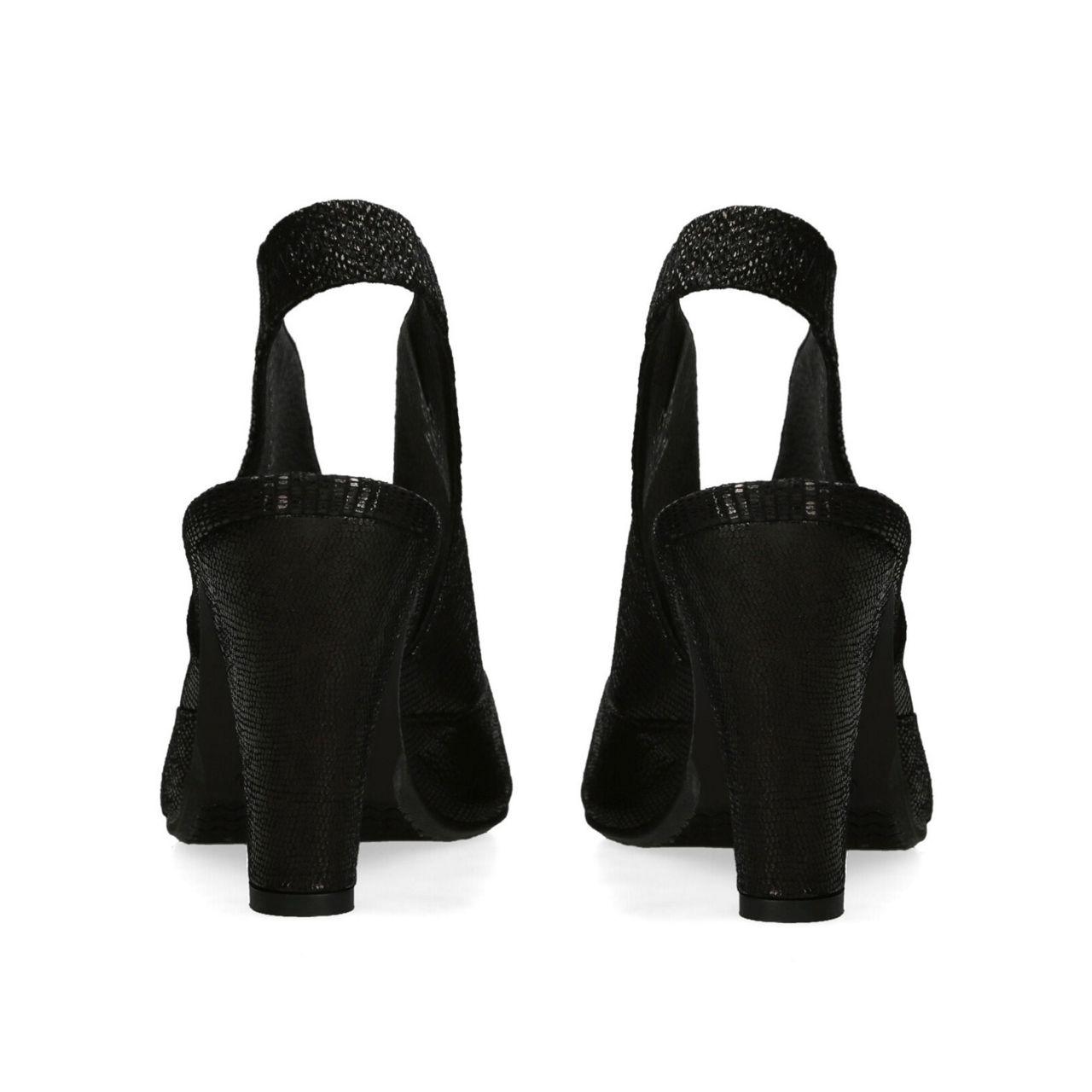 - Peep-toe, cut-out details, cone heel, cushioned sock, elasticated slingback strap, glitter finish