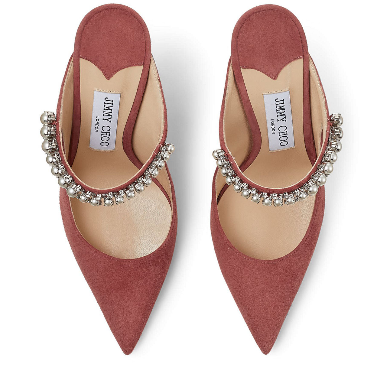 JIMMY CHOO Bing 100 Pearl & Crystal Embellished Suede Mules