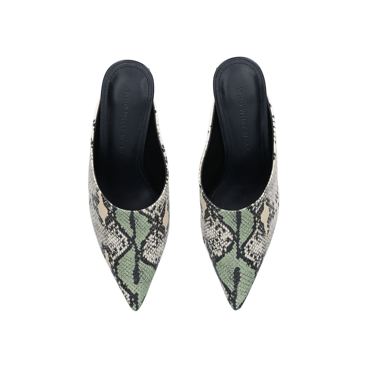 With a pointed toe and slip on style, the Kayla mule by Who What Wear is a contemporary must-have. Finished in a textured snake print leather, the kitten heel make these perfect for wearing all day long.