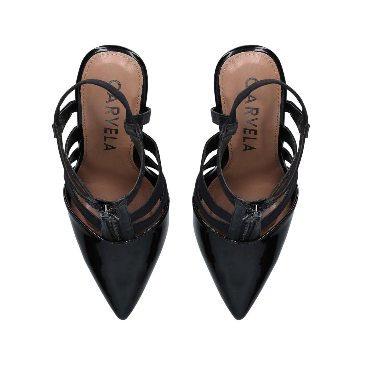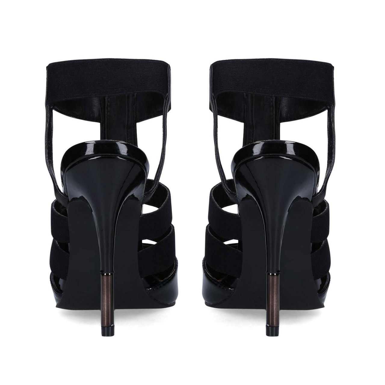 - Strappy design, stiletto heel, tassel details, patent faux leather finish